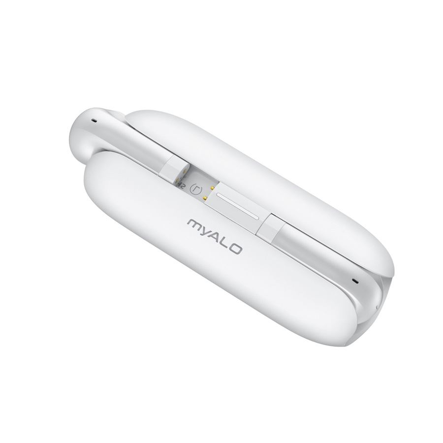 • Nên dùng khăn lau khô tai nghe ngay sau khi gặp mưa hoặc bị nước bắn vào để tránh bị hư hại.       Pin dung lượng lớn, thời gian sử dụng lâu dài Với dung lượng pin mỗi bên tai nghe 35mAh, khi hết pin bạn chỉ cần 1 giờ để sạc đầy và sau đó có thể nghe nhạc hoặc đàm thoại liên tục đến 5 giờ. Ở chế độ chờ, thời gian sử dụng của mỗi bên tai nghe có thể đạt tới 23 giờ. Hộp đựng tích hợp pin sạc dung lượng lớn 300mAh, giúp dễ dàng sạc lại cho tai nghe thêm 4-5 lần, nâng tổng thời gian nghe liên tục lên đến 30 giờ và thời gian chờ đến 120 giờ. Bạn dễ dàng sạc điện cho hộp đựng thông qua cổng sạc Type C. Vì vậy, bạn cứ thoải mái tận hưởng âm nhạc, xem phim, chơi game hay đàm thoại mà không lo hết pin cho những chuyến đi ngắn ngày.     Thiết kế trượt mở - Xu thế của tương lai Thiết kế trượt mở này đã thu hút được sự quan tâm của rất nhiều nhà thiết kế nổi tiếng, các nhà sản xuất lớn cũng như người tiêu dùng yêu chuộng công nghệ, sự trẻ trung và phóng khoáng. Tai nghe myALO X-One đang trở thành xu thế của tai nghe không dây trong tương lai.         Cảm nhận vẻ đẹp, tận hưởng âm thanh của myALO X-One Tai nghe không dây myALO X-One hiện có 2 lựa chọn màu sắc đen và trắng sang trọng để Quý vị lựa chọn.     THÔNG SỐ KỸ THUẬT • Chipset:  Jerry AD6973D4 • Kết nối: Bluetooth 5.3  • Phạm vi kết nối: 10m • Hỗ trợ: HSP, HFP, A2DP, AVRCP • Công nghệ giải mã âm thanh:  SBC, AAC • Speaker: PET Dynamic 13mm • Speaker Frequency: 20Hz-20KHz • Speaker Sensitivity: 105±3Db • Speaker Maximum Power: 5mW2 • Microphone: Silica • MIC Sensitivity (S): 38dB \±1dB • MIC Frequency Response Range: 50Hz-10KHz • Khả năng chống nước, mồ hôi: IPX4 • Pin tai nghe: 35mAh2 • Thời gian nghe liên tục: đến 5 giờ • Thời gian chờ: đến 23 giờ • Thời gian sạc: khoảng 50 phút. • Pin hộp sạc: 300mAh  • Số lần sạc cho tai nghe: 4-5 lần • Thời gian sạc hộp sạc: khoảng 1,5 giờ • Cổng sạc hộp sạc: Type C 5V-300mA • Cáp sạc: USB Type C  • Trọng lượng tai nghe: 3,90 gram*2 • Kích thước tai nghe: 34 x 18 x 15mm • Trọng lượng hộp sạc: 25,20 gram • Kích thước hộp sạc: 84 x 34 x 14mm