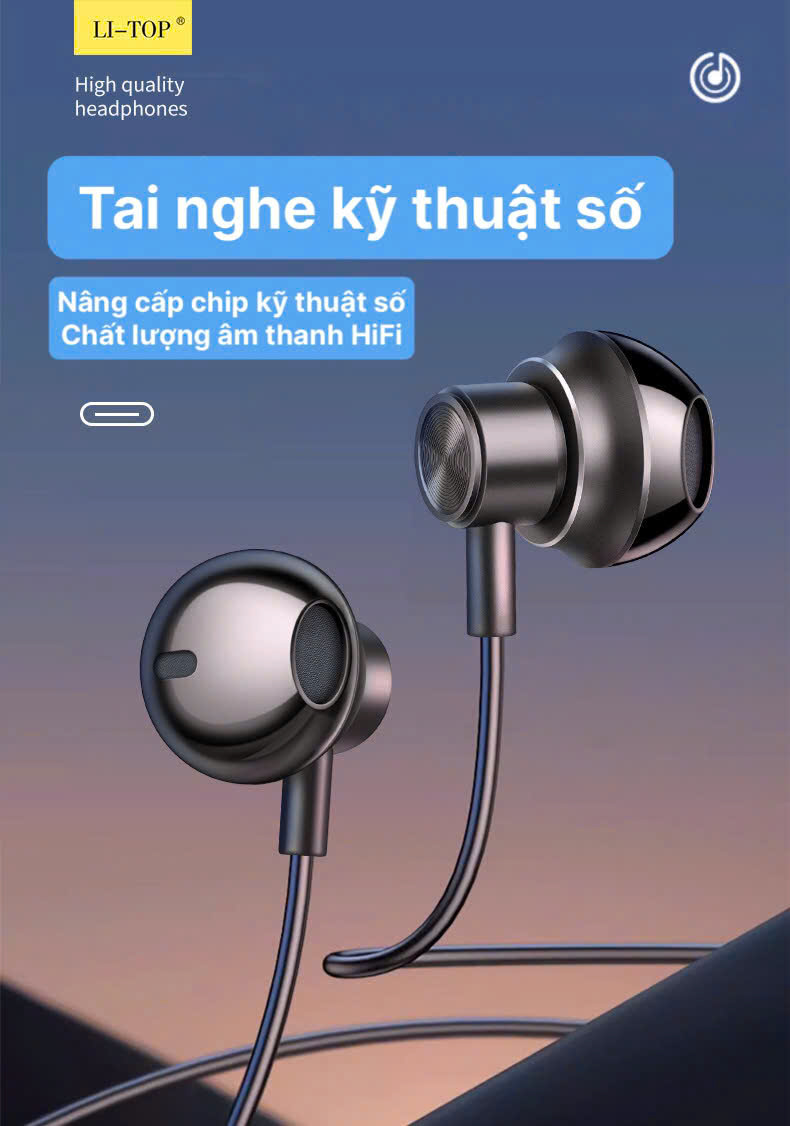 Tai nghe kim loại Rio Tinto Li-Top SV5 chân Type C, điều chỉnh âm thanh trầm giải mã kỹ thuật số, hàng chính hãng Sản phẩm Li-Top cho Kim Ánh nhập trực tiếp về, có QR trên thân hộp kiểm tra chính hãng, cam kết hàng chính hãng sai 1 đền 100 Sản phẩm có Micro đàm thoại, và chỉnh âm lượng, phím chức năng chỉnh ngưng và phát nhạc, qua bài, nhận cuộc gọi   Lọc tiếng ồn, làm trường âm thanh trong suốt, mở rộng dải tần số cao, ổn định hiệu ứng tần số thấp, lắng nghe rõ từng chi tiết bản nhạc của bạn. Thiết kế bán trong tai vừa vặn với đường viền tai, giúp bạn đeo thoãi mái không bị rơi ra giúp cách ly âm thanh và giảm tiếng ồn từ bên ngoài Nâng cấp chip kỹ thuật số cho chất lượng âm thanh HIFI   Màn loa Composite vòng đồng, khoang âm thanh kim loại cải thiện đáng kể độ phân giải và khôi phục âm thanh gốc trong phòng thu kiểu dáng đẹp phù hợp xu hướng thị trường Chân cắm Type C dùng được cho tất cả các máy có chân cắm tương ứng ( Type C) khách dùng hàng chính hãng thì yên tầm về độ bền và chất lượng, Kim Ánh bảo hành chính hãng 12 tháng