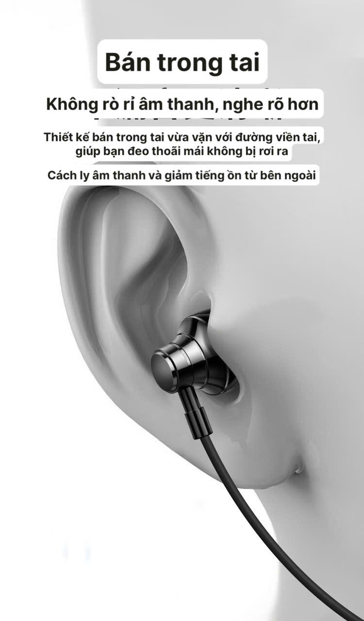 Thông số chi tiết sản phẩm -------------- Tai nghe có dây Ba-se-us H18, Tai nghe nhét tai, có mic Ba-se-us H18 Cổng 3.5mm Cho Âm Thanh Sống Động Tai nghe có dây Baseus Enock H18 Wired Earphones là một sản phẩm tai nghe chất lượng từ thương hiệu Ba-se-us, được thiết kế để mang đến trải nghiệm âm thanh tốt và thoải mái cho người dùng. - Tai nghe có dây này được trang bị driver động đường kính lớn, cho phép tái tạo âm thanh chất lượng cao với âm bass sâu, âm trầm mạnh mẽ, và âm treble sắc nét. Điều này tạo ra một trải nghiệm nghe nhạc sống động và chi tiết, phù hợp với nhiều thể loại nhạc khác nhau. -     - Thiết kế tai nghe Ba-se-us Enock H18 có dạng trong tai (in-ear), với bộ đệm tai bằng silicone mềm mại và êm ái, giúp tai nghe vừa vặn và thoải mái khi đeo trong thời gian dài. Điều này cũng giúp cách âm tốt, giảm tiếng ồn từ môi trường xung quanh, cho phép bạn tập trung vào âm nhạc của mình. - Cáp tai nghe được làm từ chất liệu bền bỉ, chống rối và chống đứt, giúp tăng tuổi thọ của sản phẩm. Điều này giúp bạn sử dụng tai nghe lâu dài mà không phải lo lắng về việc hỏng hóc. - Tai nghe có dây Ba-se-us Enock H18 Wired Earphones là một sản phẩm tai nghe chất lượng, đem lại trải nghiệm âm thanh tốt và thoải mái. Với thiết kế in-ear, cách âm tốt, và tích hợp điều khiển thông minh, nó là sự lựa chọn tuyệt vời để thưởng thức âm nhạc và sử dụng cuộc gọi một cách tiện lợi hàng ngày.