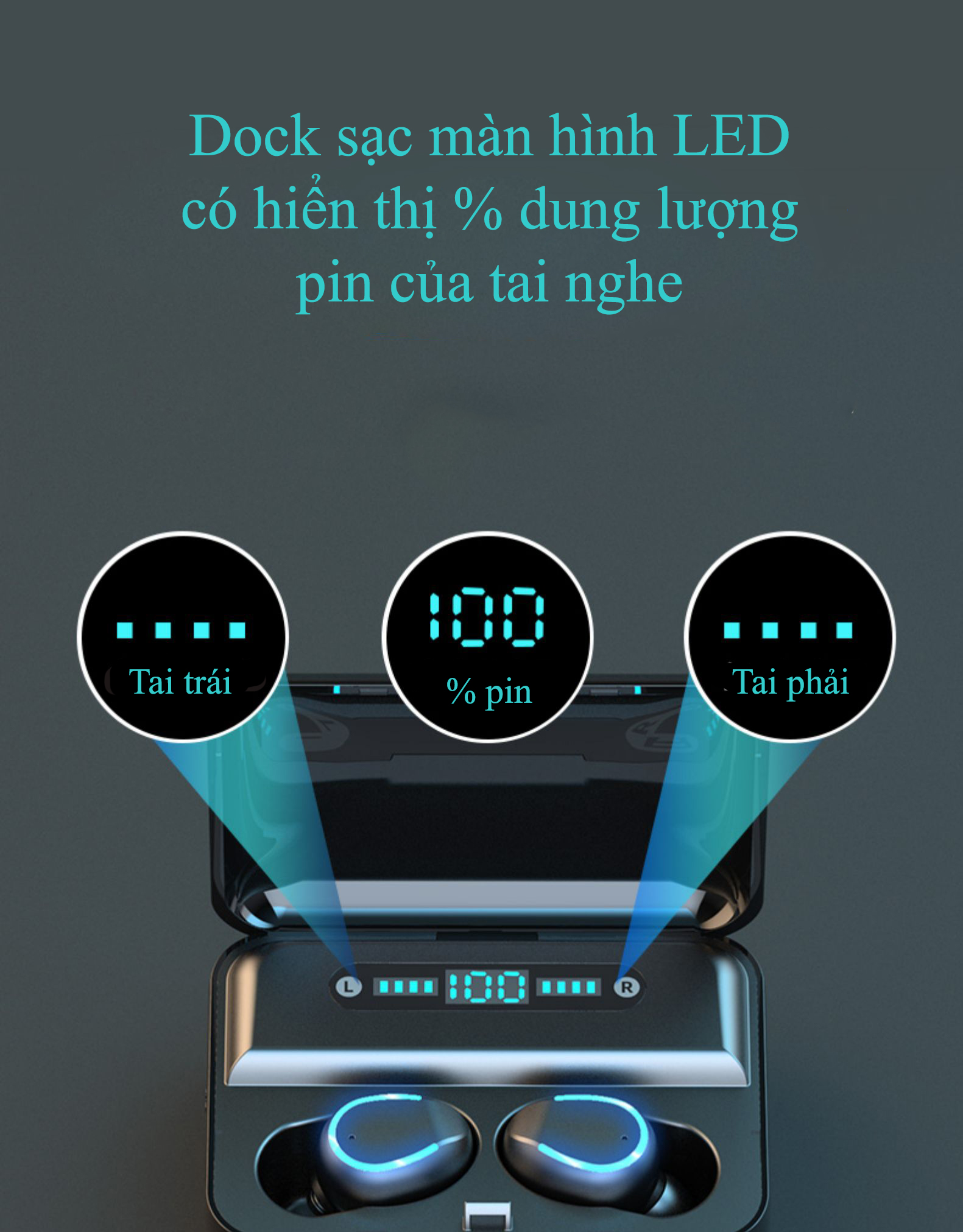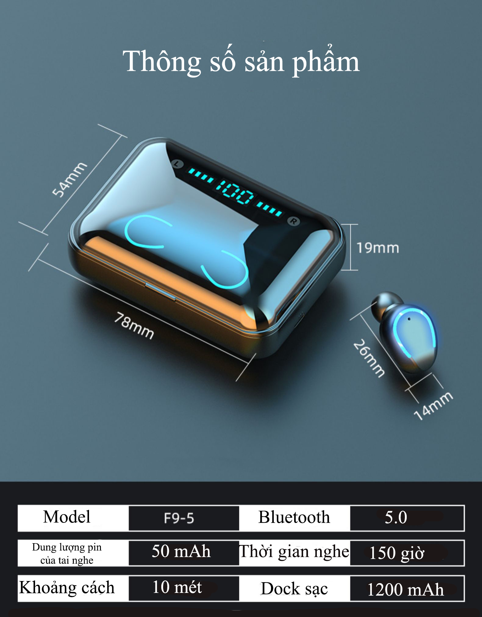 Tai Nghe Bluetooth F9-5C Không Dây, Âm Thanh Stereo HiFi 9D. Có Hộp Sạc, Có Led Hiển Thị % Pin