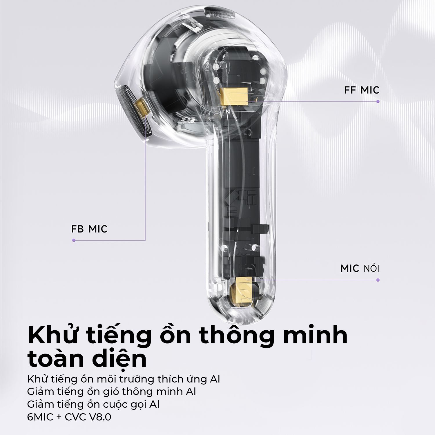 Khử nhiễu, khử méo tiếng, khử ồn gió AI với 6Mic + Thuật toán Qualcomm CVC 8.0
