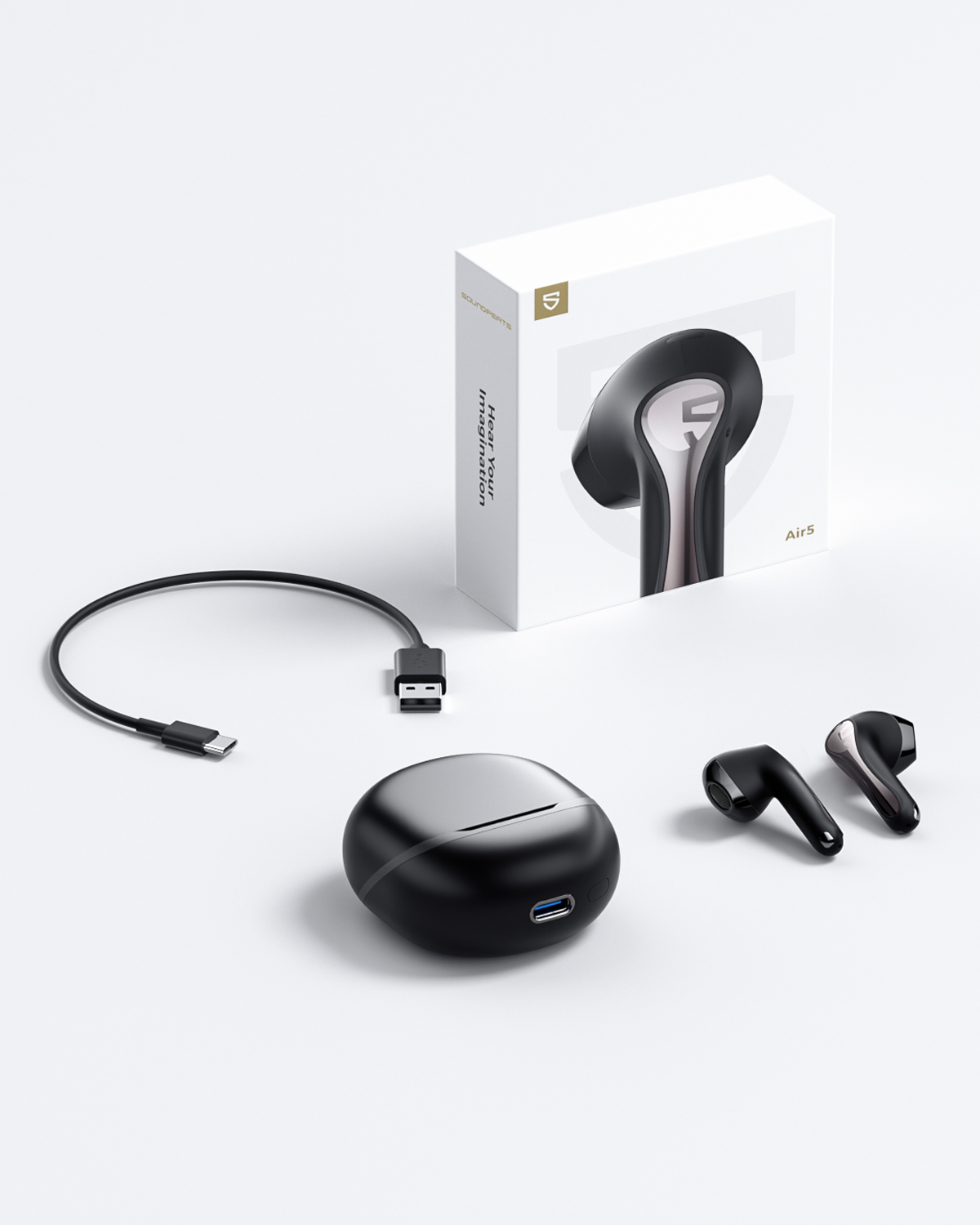 SoundPEATS Air5, một mẫu tai nghe được nâng cấp từ SoundPEATS Air4, thiết kế hộp sạc và tai nghe độc đáo mang lại sự thoải mái và thẩm mỹ hơn. Kích thước hộp nhỏ hơn bản Air4 khoảng 20%. Nền tảng âm thanh của chipset Qualcomm S3 QCC3091 mang lại khả năng kết nối tốt hơn với chuẩn Bluetooth 5.4, chất lượng âm thanh tốt hơn với màng loa sinh học bảo vệ tai Composite 13mm đã cải tiến, độ méo tiếng cực thấp, khử ồn gió và khử tín hiệu nhiễu. Các tính năng khác của Air4 vẫn duy trì trên SoundPEATS Air5.
