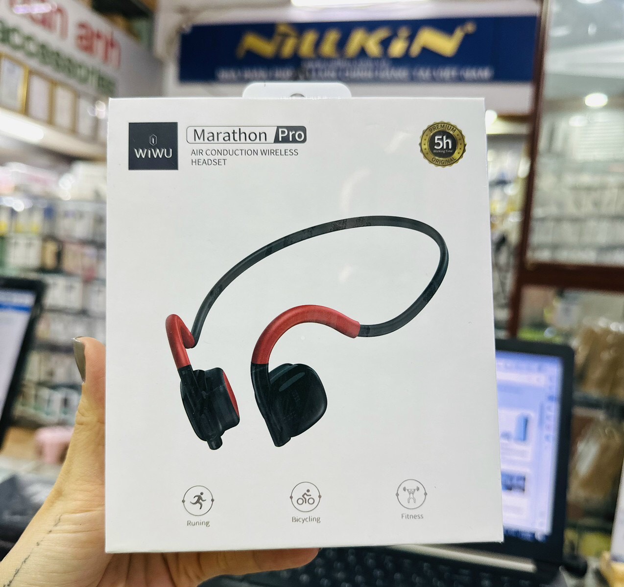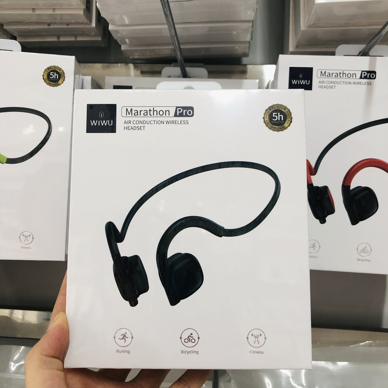 Tai #Wiwu Marathon pro Thương hiệu: #Wiwu Màu sắc: đen, xanh, đỏ Kết nối Bluetooth V5 3 Pin: 140mAh Thời gian nghe: 6 giờ Thời gian sạc: 1.5H Tai nghe có chất lượng âm thanh độ nét cao, cuộc gọi rõ ràng Kiểu dáng thể thao, ngoại hình 3 bảo vệ thính giác không đau tai