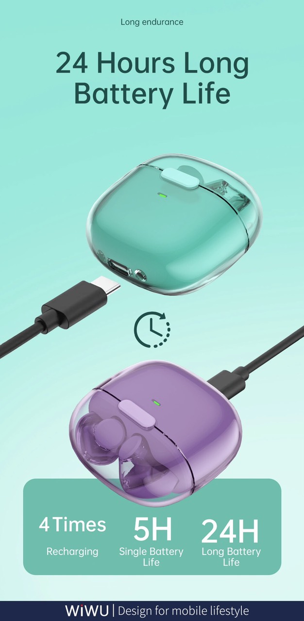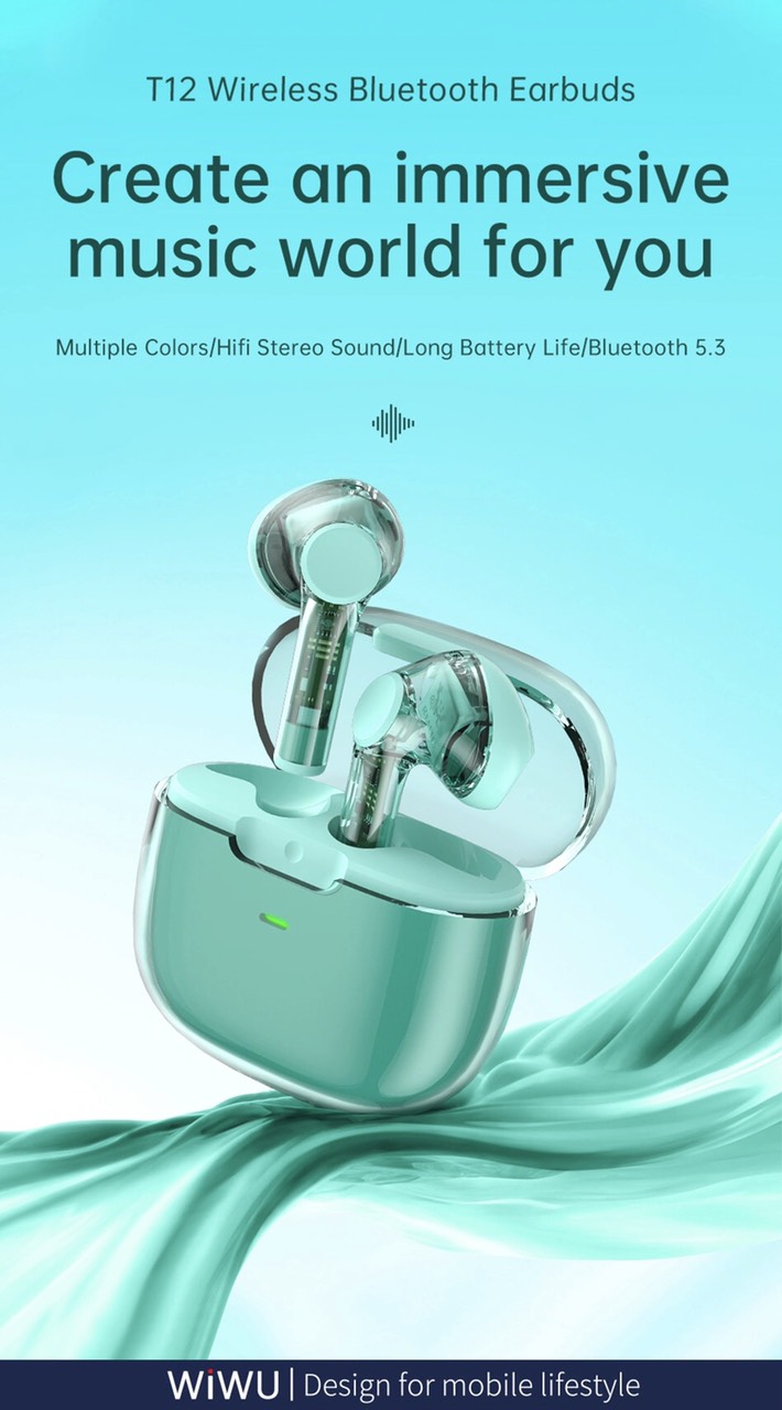 Hot Tai nghe Wiwu Pure Sound TWS12 Thương hiệu: Wiwu Mô tả sản phẩm - Màu sắc: Đen, Cam, Tím, Xanh, Hồng - Thời gian nghe: 4-5 giờ - Có cổng sạc USB C - Kết nối Bluetooth V5.3 công nghệ tiên tiến kết nối nhanh và ổn định - Pin: 300mAh cho hộp sạc, 35mAh cho tai nghe - Thời gian sạc: 1.5H - Thiêt kế tai nghe trọng lượng siêu nhẹ 3.5g - Tuổi thọ pin dài 24 giờ - Quản lý cuộc gọi và điều khiển cảm ứng trực tiếp trên tai nghe - Chất lượng âm thanh nổi HIFLHD