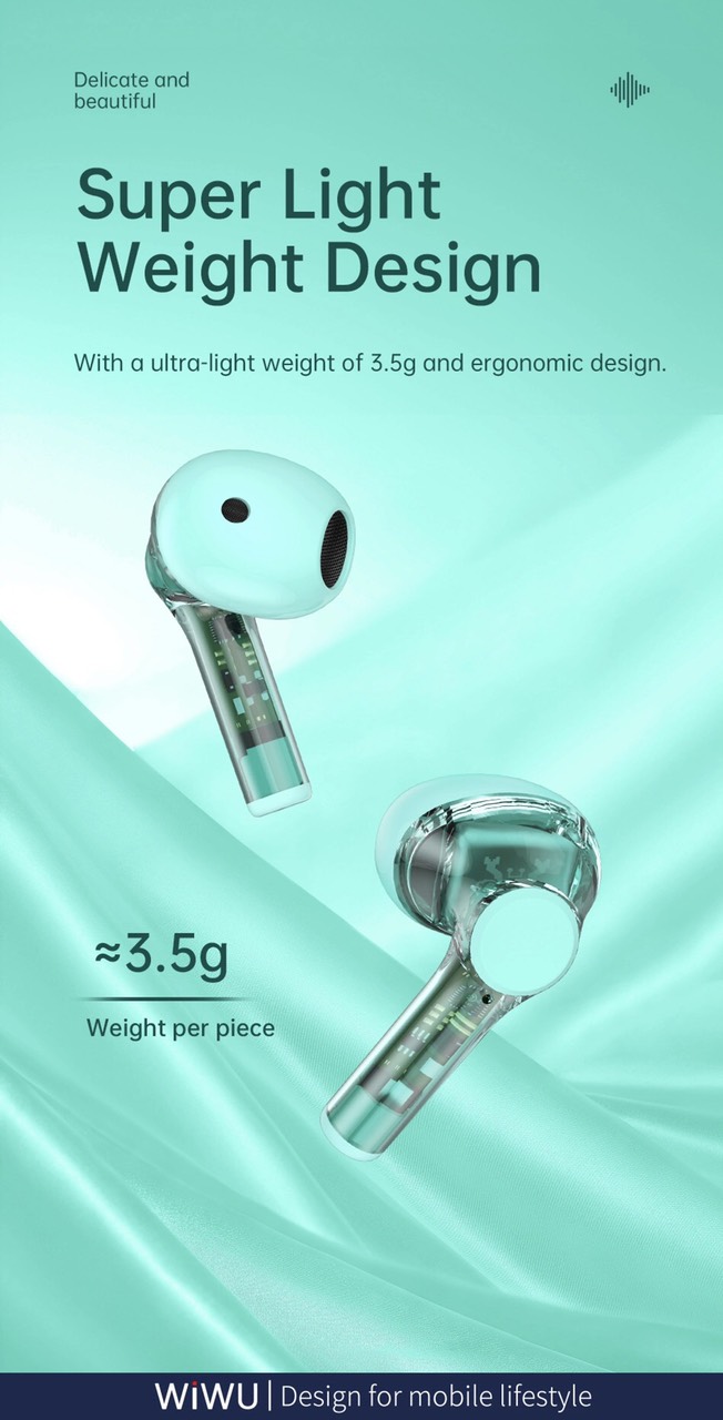 Đích thực không dây, nhẹ như bông - Thiết kế bề ngoài hoàn toàn trong suốt, có được trải nghiệm thẩm mỹ công nghệ sống động. - Điều chỉnh công nghệ âm thanh chuyên nghiệp,