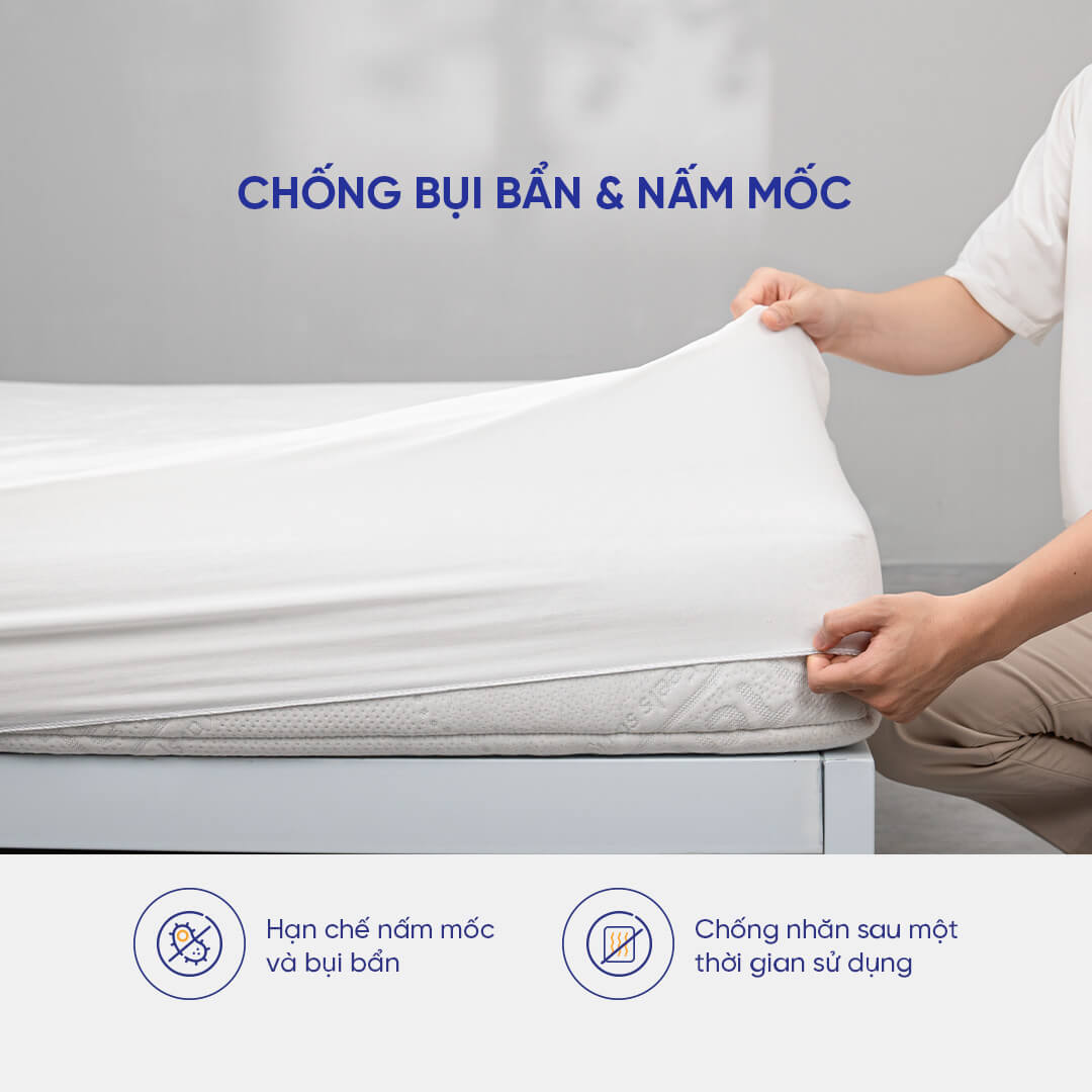 ✩ CHỨC NĂNG: nhằm ngăn các chất bài tiết của cơ thể (mồ hôi, ) thấm trực tiếp vào nệm, giúp nệm luôn sạch sẽ, không có mùi hôi, hạn chế vi khuẩn phát sinh