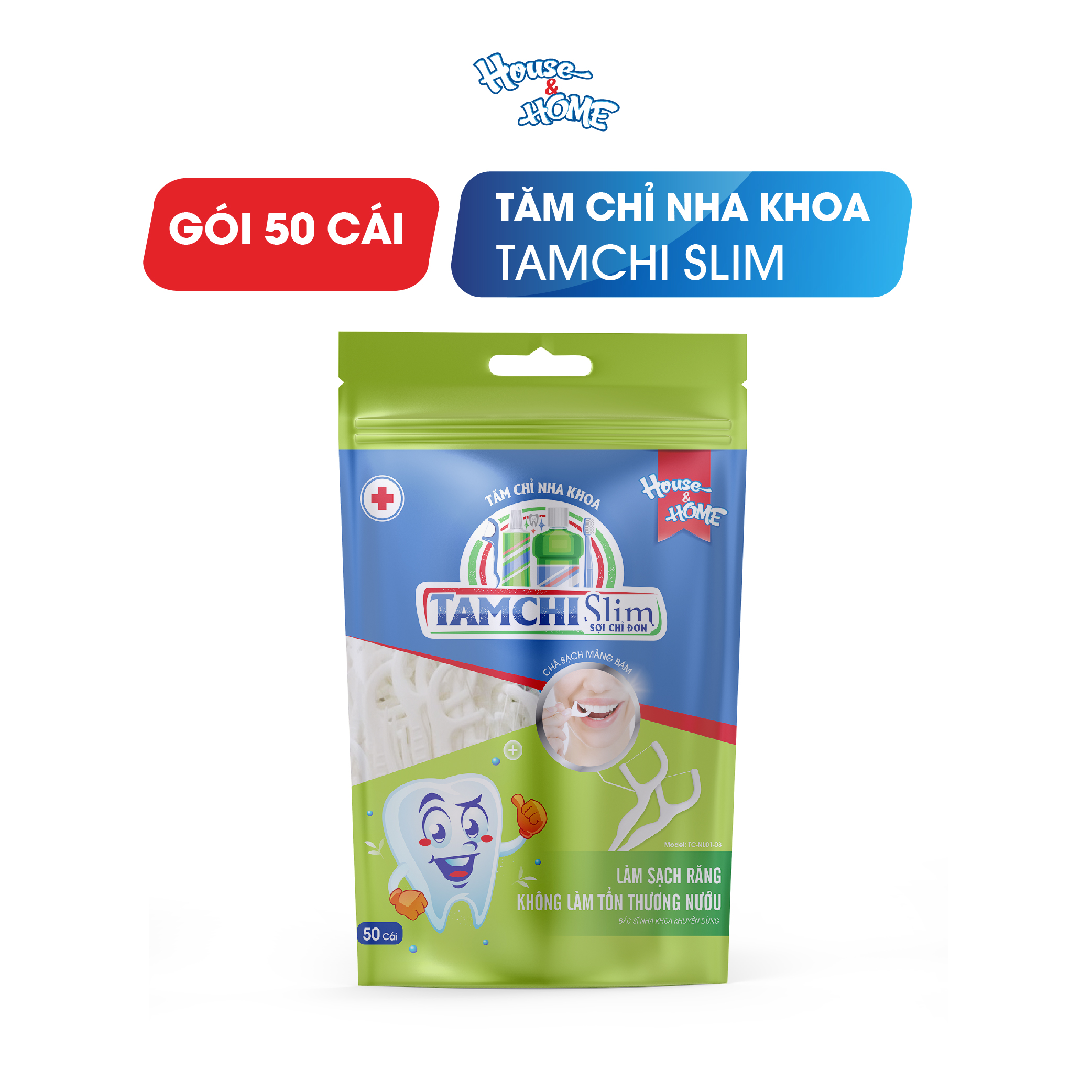 - Tên sản phẩm: Tăm chỉ nha khoa - TAMCHI Slim sợi chỉ đơn - Thông tin thương hiệu: TAMCHI là nhãn hàng thuộc Công ty Cổ phần Sản xuất Gia dụng House & HOME