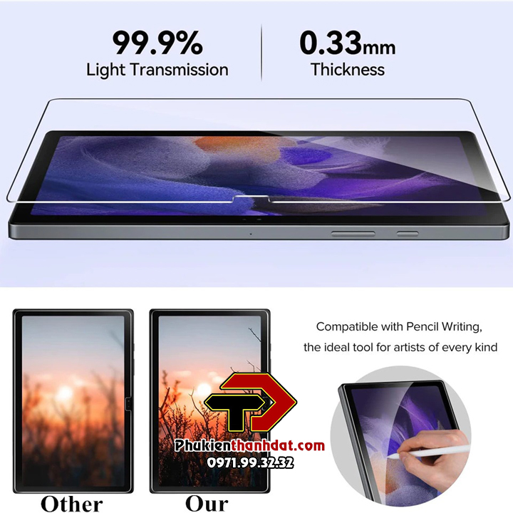 - Tấm dán kính cường lực hiệu Glass Pro, chống xước màn hình, bảo vệ màn hình một cách hoàn hảo với độ cứng lên tới 9H (gấp 20 lần tấm dán film sử dụng trong tấm dán thông thường) Hiển thị hình ảnh với độ nét cao nguyên bản so với hình ảnh hiển thị gốc
