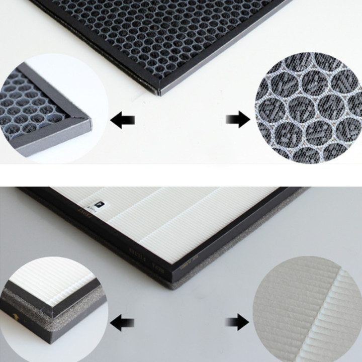 - Tấm lọc giúp giảm lượng hơi TVOC xuống còn 0.01mg/m3 trong không khí nhờ vào than dừa hoạt tính trong tấm lọc Loại bỏ hiệu quả các khí độc hại