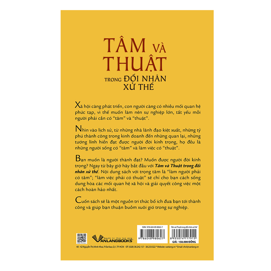 Cuốn sách "Tâm và thuật trong đối nhân xử thế" sẽ là một nguồn tri thức bổ ích đưa bạn tới thành công và giúp bạn thuận buồm xuôi gió trong sự nghiệp .