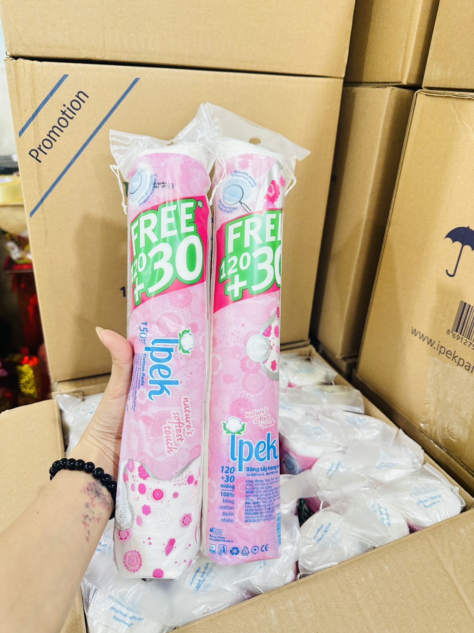 ✨[ Tặng 1 gói bông Care4u 233 miếng ] Combo 1 thùng bông tẩy trang Ipek 150 miếng ( 30 gói x 150)