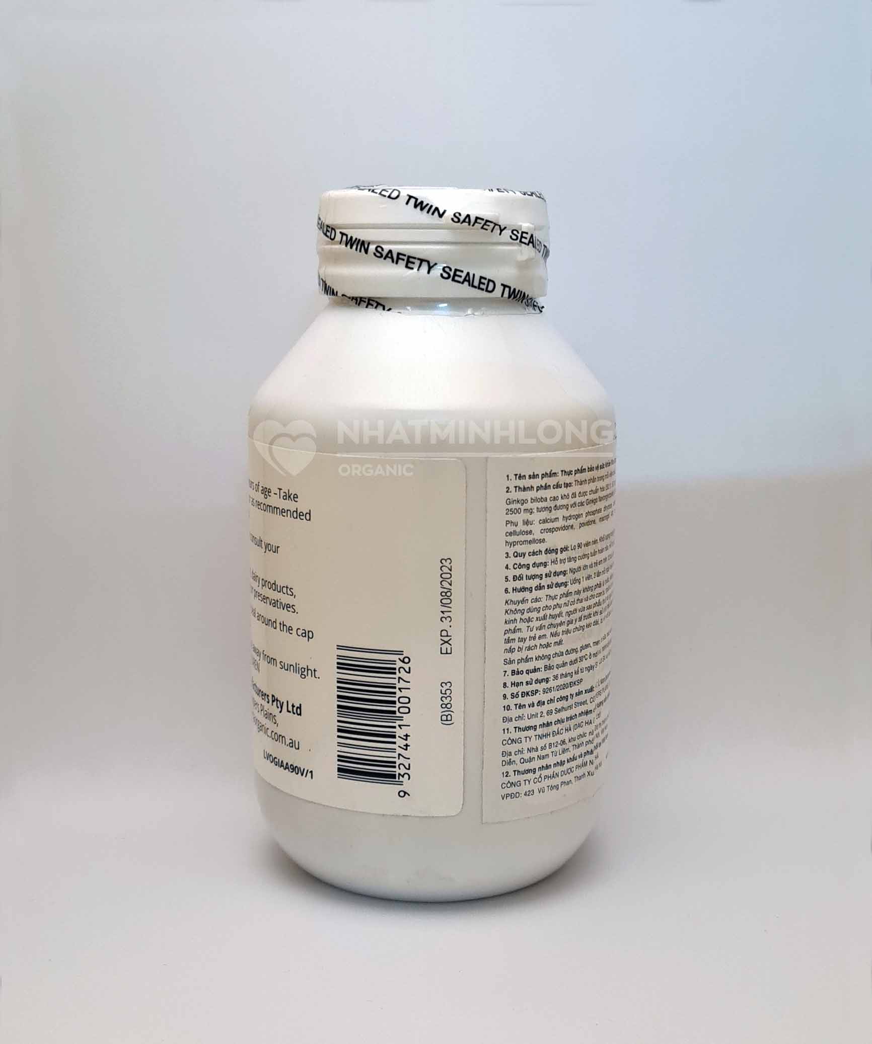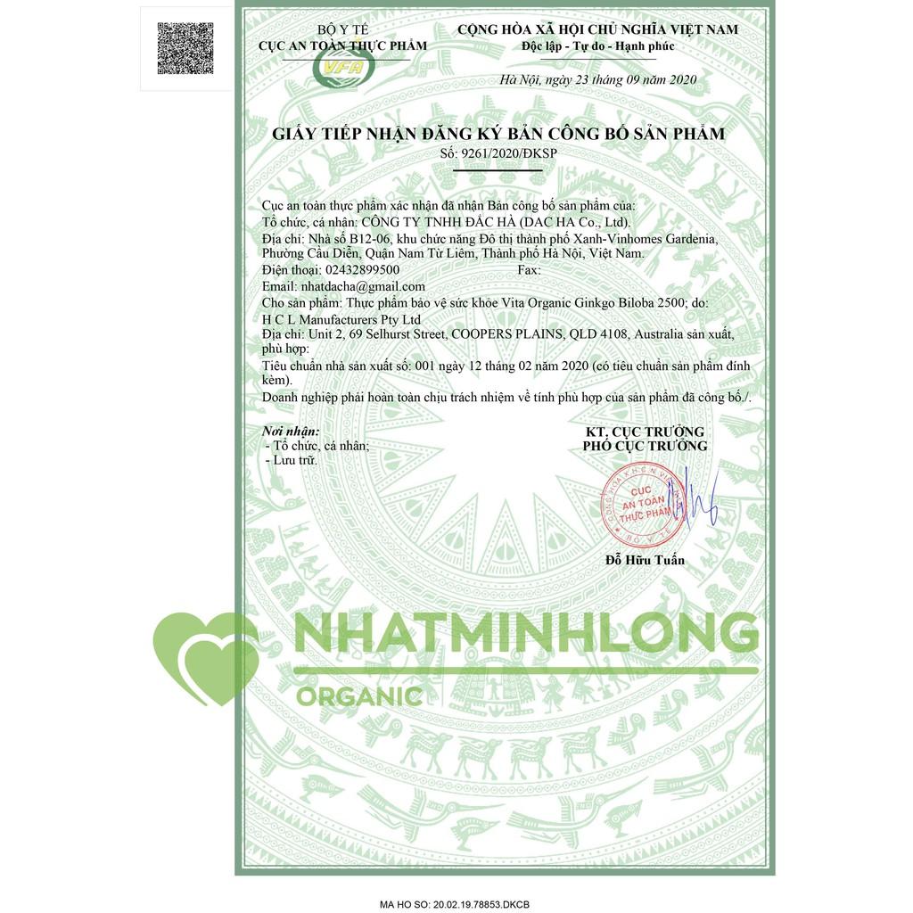 - Tên sản phẩm: Tăng cường tuần hoàn não, cải thiện trí nhớ và khả năng tập trung Vita Organic Ginkgo Biloba 2500