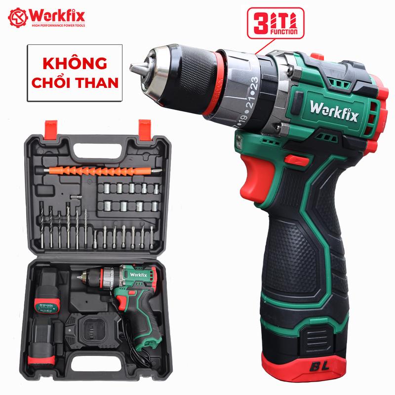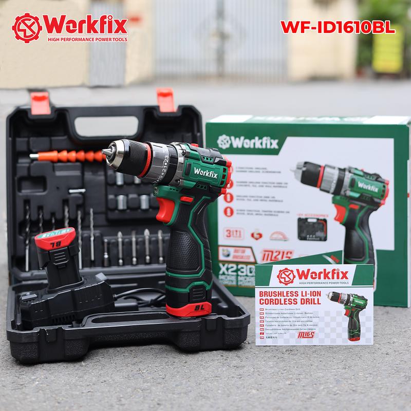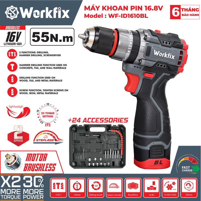 [ TẶNG phụ kiện 24 món] Máy Khoan Workfix 3 Chức Năng 16.8V - WF-ID1610BL - Động Cơ Từ Cao Cấp - 2 Pin 4 Cell 16.8V/2Ah - Kèm Phụ Kiện 24 Món - Bảo Hành Chính Hãg