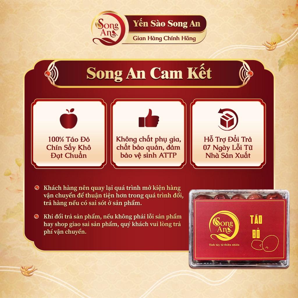 - Táo đỏ sấy khô có thể nấu cùng thức ăn như nấu chè, nấu canh, hầm nước xương, hoặc ngâm rượ *Sản phẩm này không phải là thuốc và không có tác dụng thay thế thuốc chữa bệnh SONG AN FOOD - TINH TÚY TỪ THIÊN NHIÊN