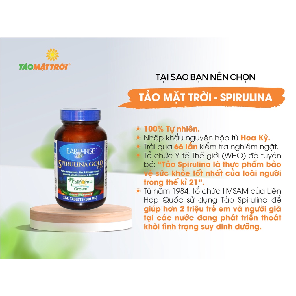 ✨Tảo Mặt Trời Earthrise Spirulina Gold Plus - Hỗ trợ tăng cân - Lọ 360 viên