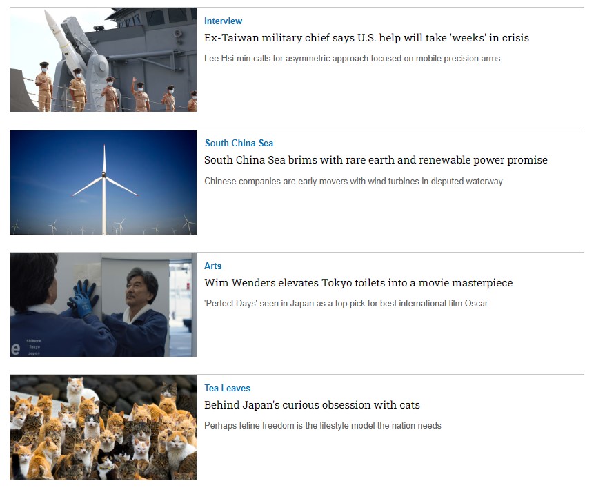 • Là thương hiệu truyền thông lớn và được kiểm duyệt nội dung hằng tuần với dạng thông tin chính thống, được thu thập từ các phóng viên uy tín trên toàn Châu Á, là nguồn trích xuất cho nhiều nhà báo tại Việt Nam.