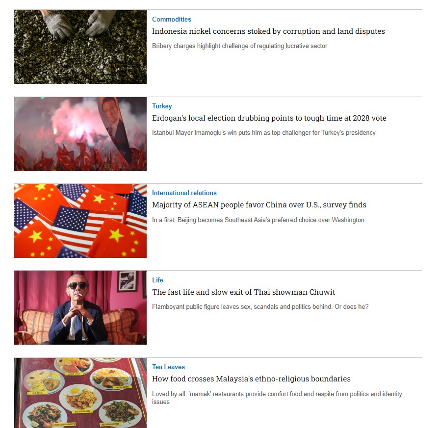 Nikkei Asia là tạp chí bằng tiếng Anh rất uy tín của Nikkei - Nhật Bản, chuyên viết về Xu hướng khu vực châu Á - Thái Bình Dương, Kinh tế, Công nghệ, Chính trị,