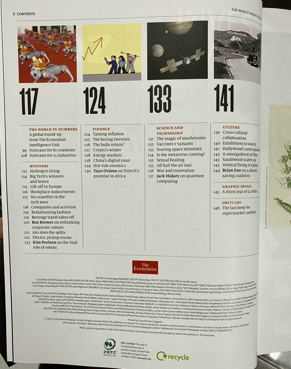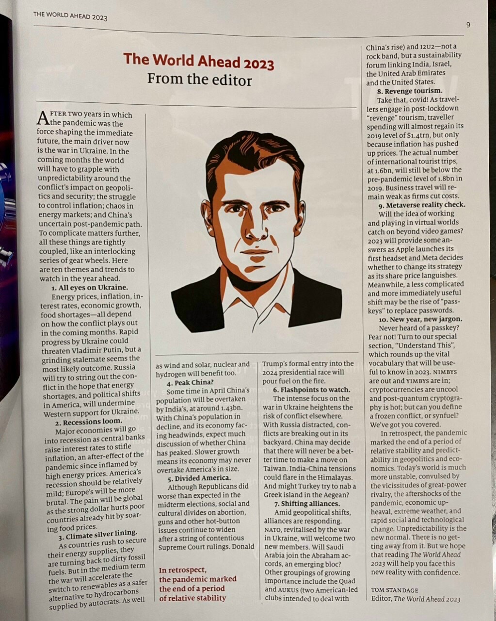 The World Ahead 2023- Là phiên bản giới hạn và độc quyền của The Economist Group, được doanh nhân thế giới mong chờ, mỗi năm chỉ phát hành một lần duy nhất vào cuối năm để tiên đoán thế giới ở năm sau.
