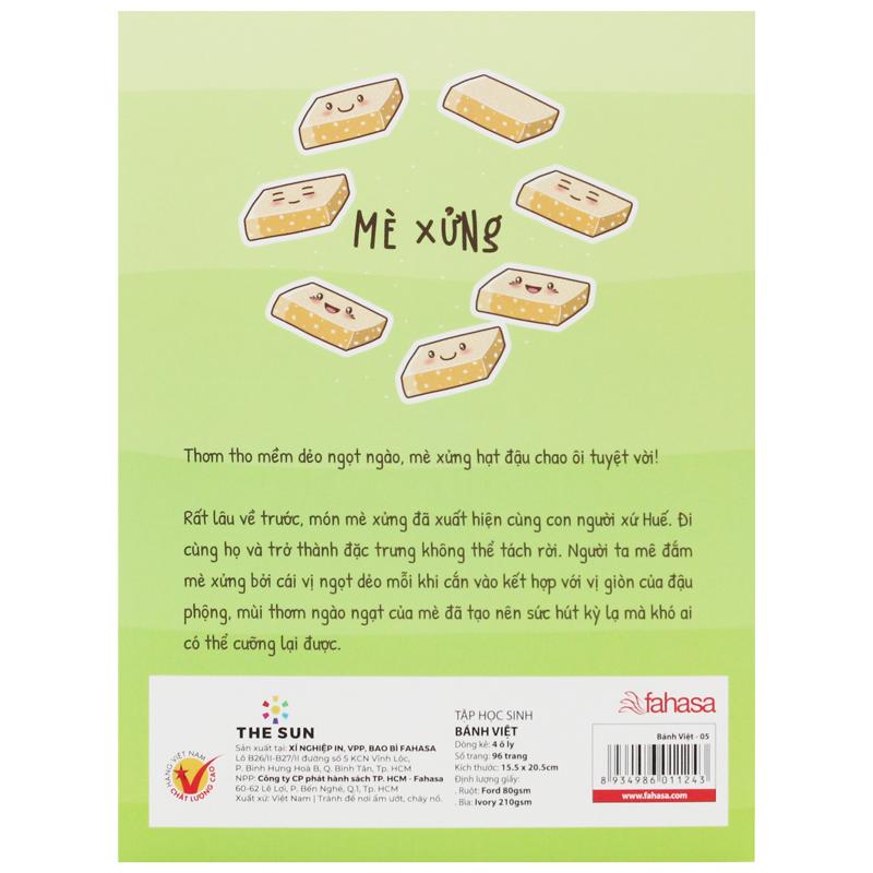 ✨Tập Học Sinh Bánh Việt - Miền Nam - 4 Ô Ly - 96 Trang 80gsm - The Sun 05 - Mè Xửng
