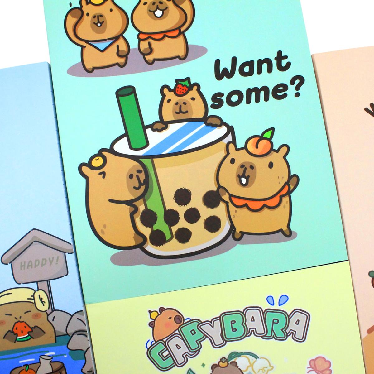 Bìa tập trang trí hình các chú capybara dễ thương, màu sắc nổi bật, tạo cảm hứng cho các em trong quá trình học tập.