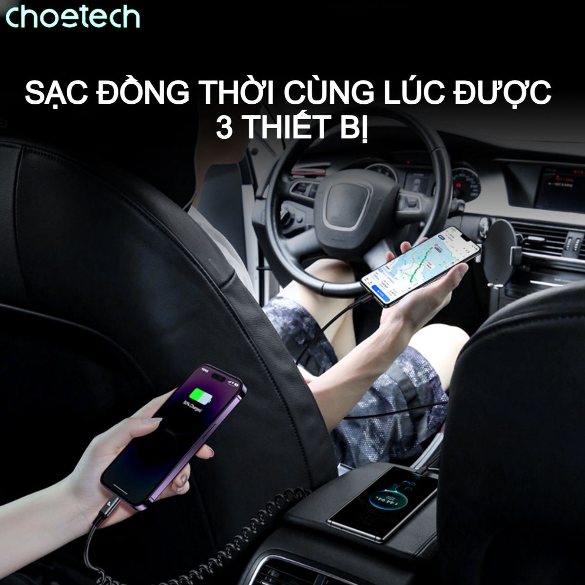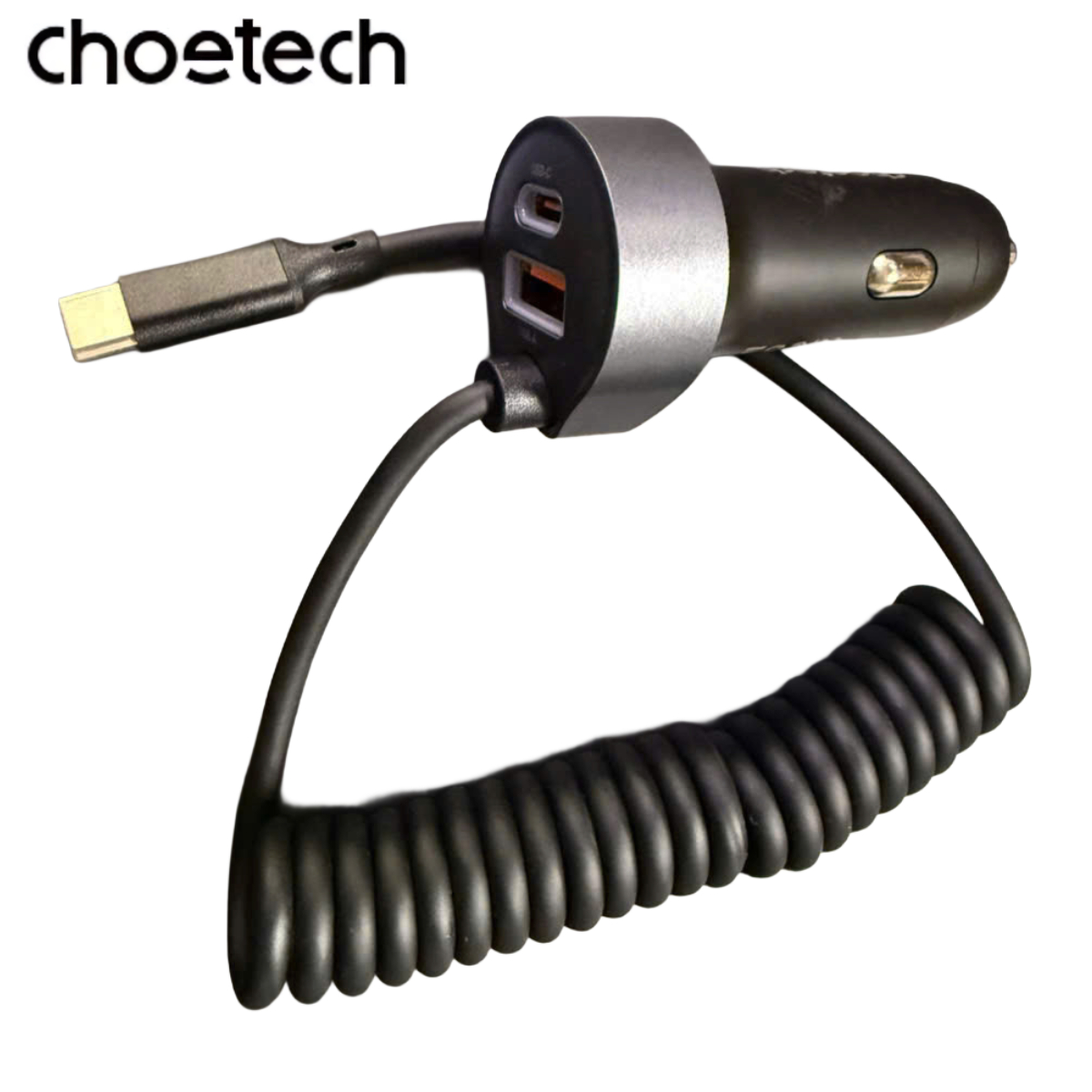 ✨Tẩu Choetech TC0030 sạc nhanh ô tô 65W tích hợp thêm dây cáp sạc lò xo Type C (Hàng chính hãng)