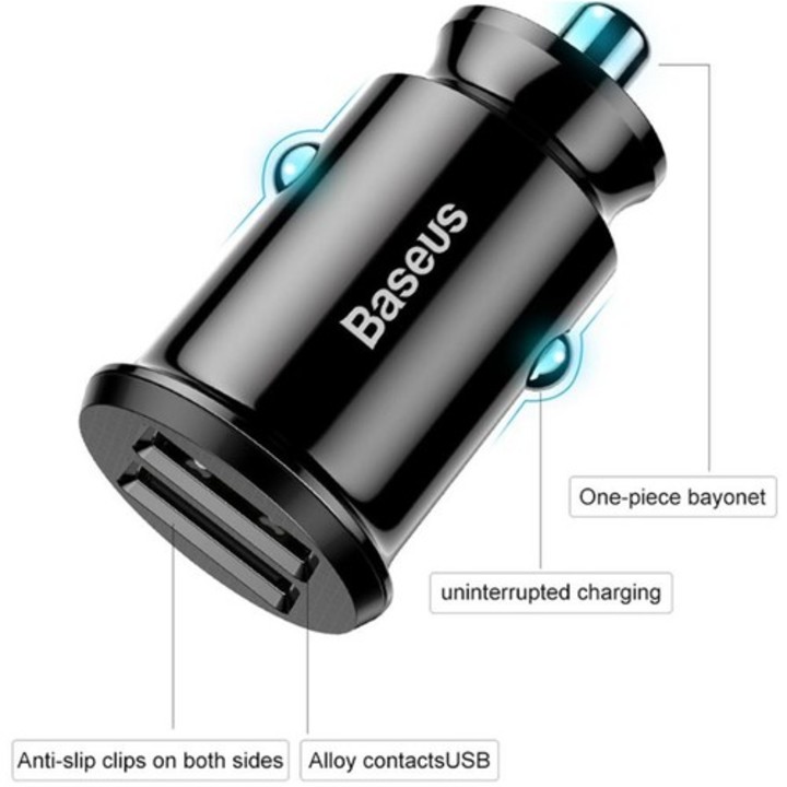 Tẩu sạc ô tô nhãn hiệu Baseus CCALL-ML01 Tính năng cơ bản Bộ tẩu sạc đa năng dùng cho xe hơi Baseus Grain Mini (5V, 3.1A Fast Charge, 2 cổng USB Car Charger)