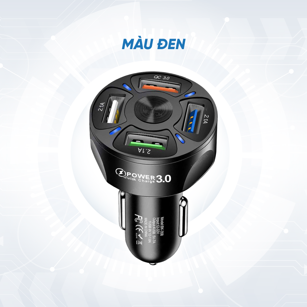 Tẩu Sạc Xe Ô Tô 4 Cổng USB Công Nghệ Sạc Nhanh QC 3.0A THÔNG TIN SẢN PHẨM: