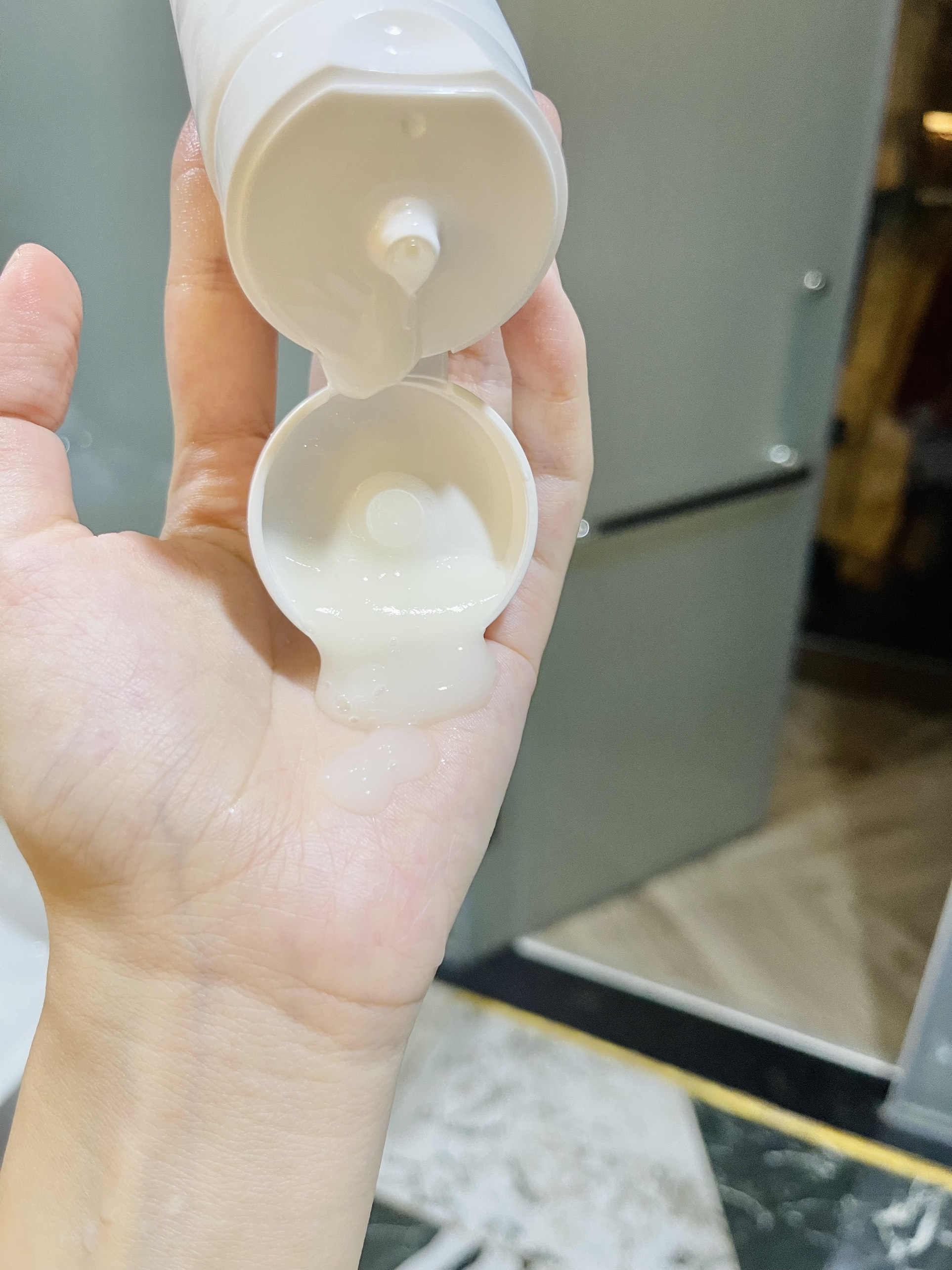 - Lấy một lượng gel vừa đủ tẩy da chết trên mặt
