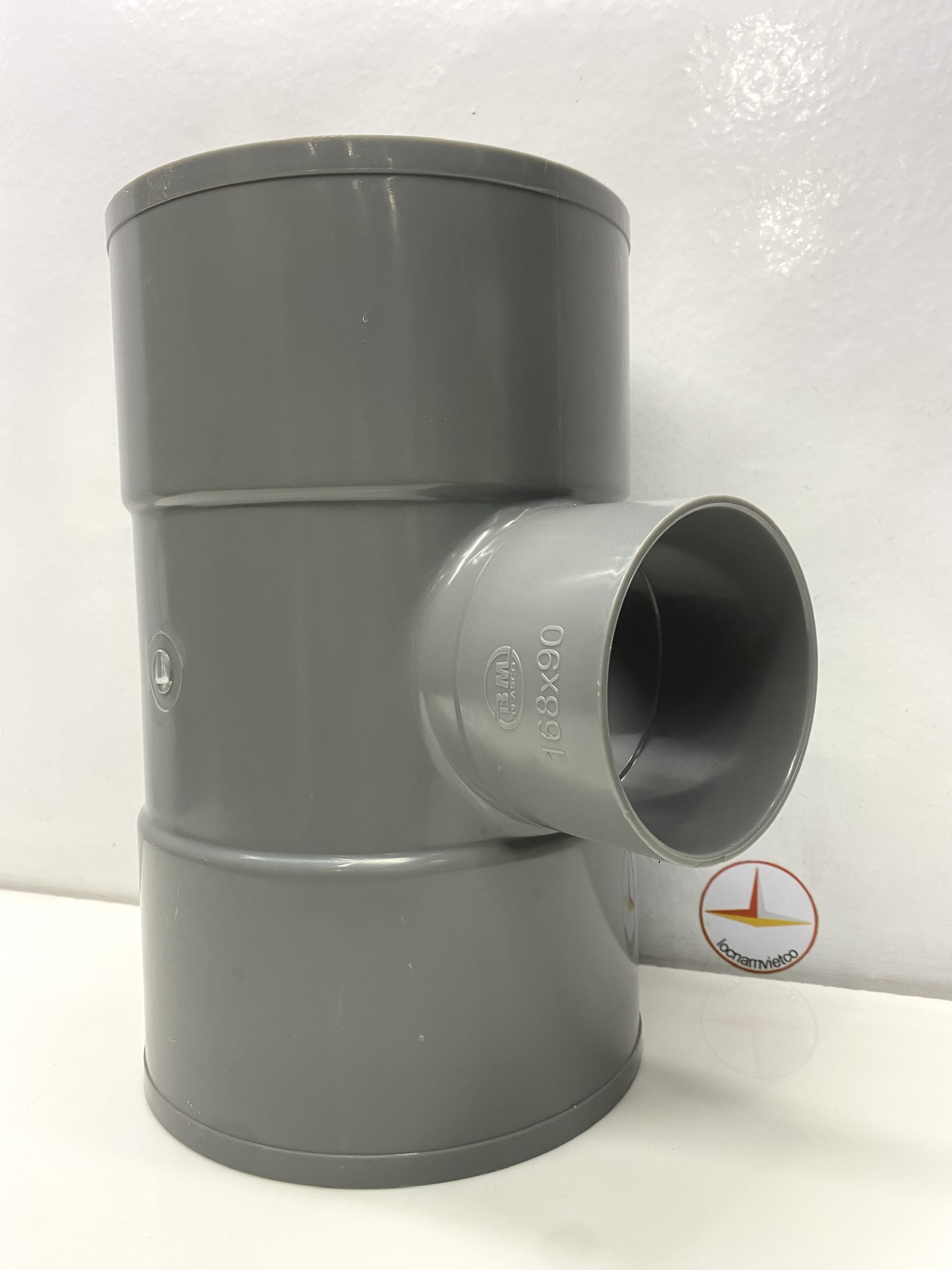 Tê giảm 168 x 90 nhựa PVC Bình Minh_T168x90M Tê giảm hay còn gọi là tê rút (Tiếng anh Reducing Tee). Chữ tê giảm dùng chia nước từ đường ống sẵn có ra thêm một ống nhỏ hơn ống hiện tại vuông góc 90 độ của ống đang đi sẵn. Đặc Điểm: