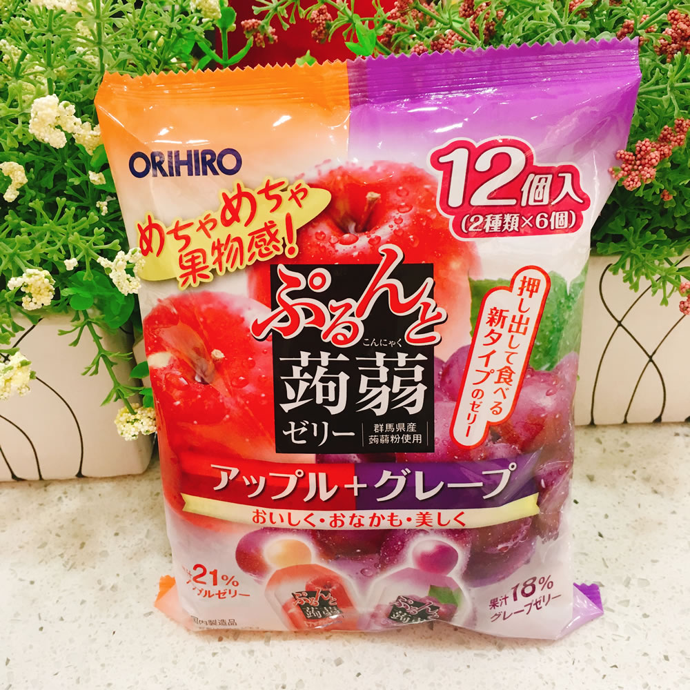 Sản phẩm có 2 hương vị được nhiều người ưa thích là vị táo và vị nho. Thơm thơm chua chua ngòn ngọt thạch Orihiro sẵn sàng làm say mê cả những