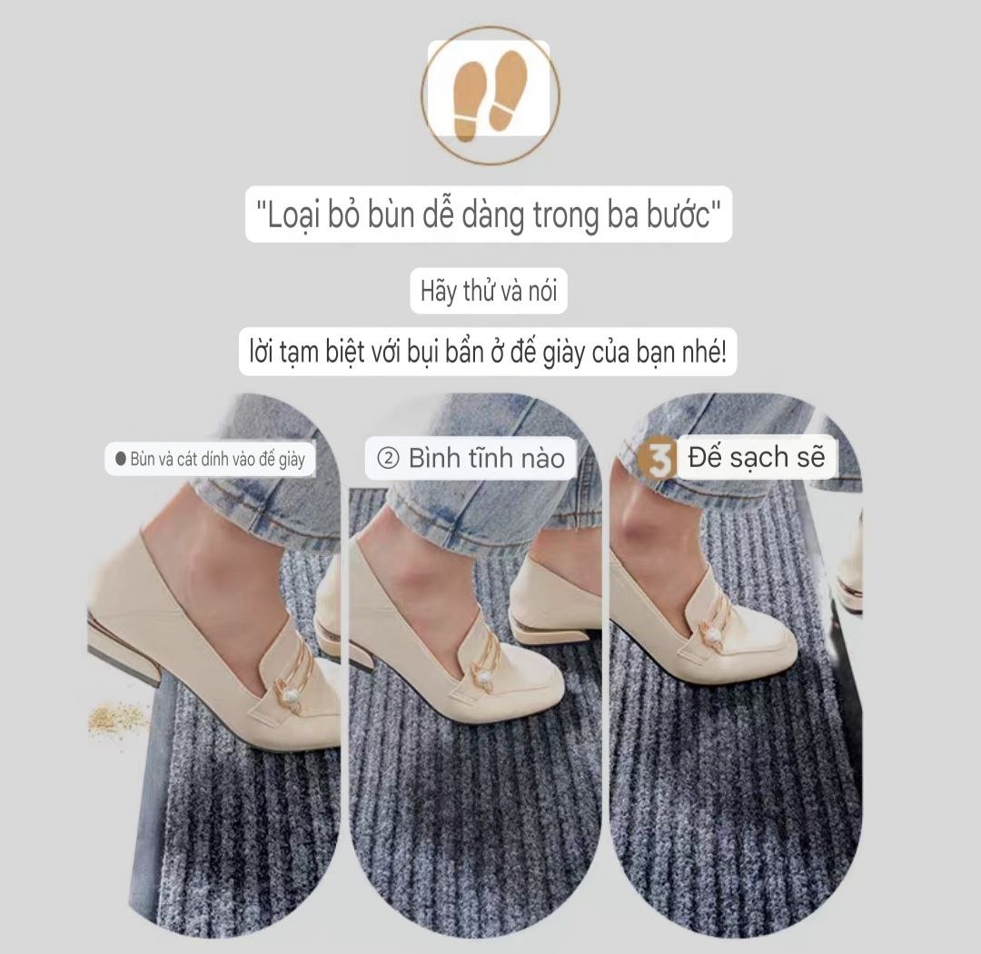 - Thảm có thiết kế rãnh sọc giúp dễ vệ sinh, chỉ cần xịt nước, bụi bẩn sẽ trôi theo rãnh thoát nhanh ra ngoài.