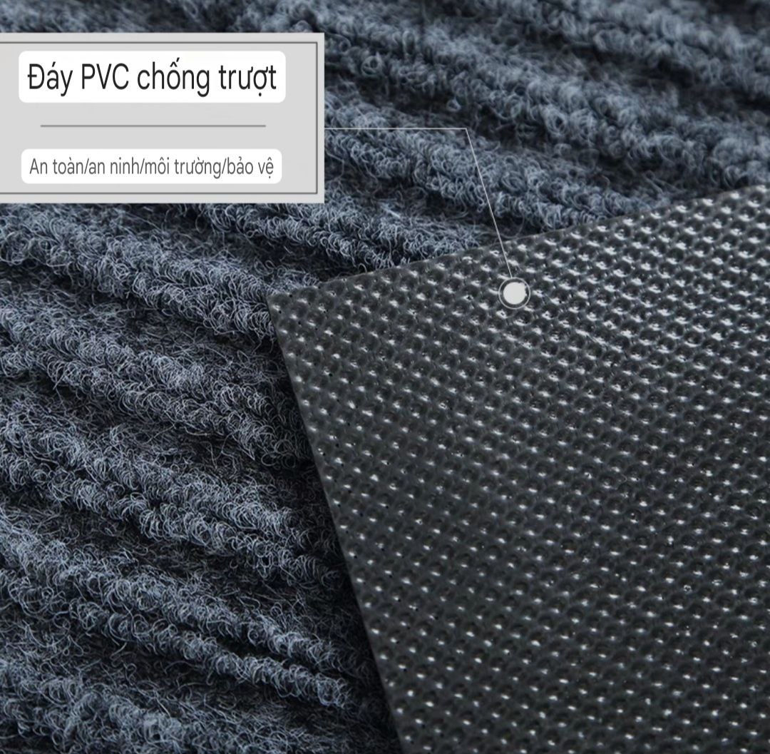 Chống trượt vượt trội: Đế cao su PVC không thấm nước, độ bám dính cao, giữ chặt thảm trên sàn – hạn chế trơn trượt, đặc biệt hiệu quả ở khu vực sàn trơn hoặc ẩm ướt.