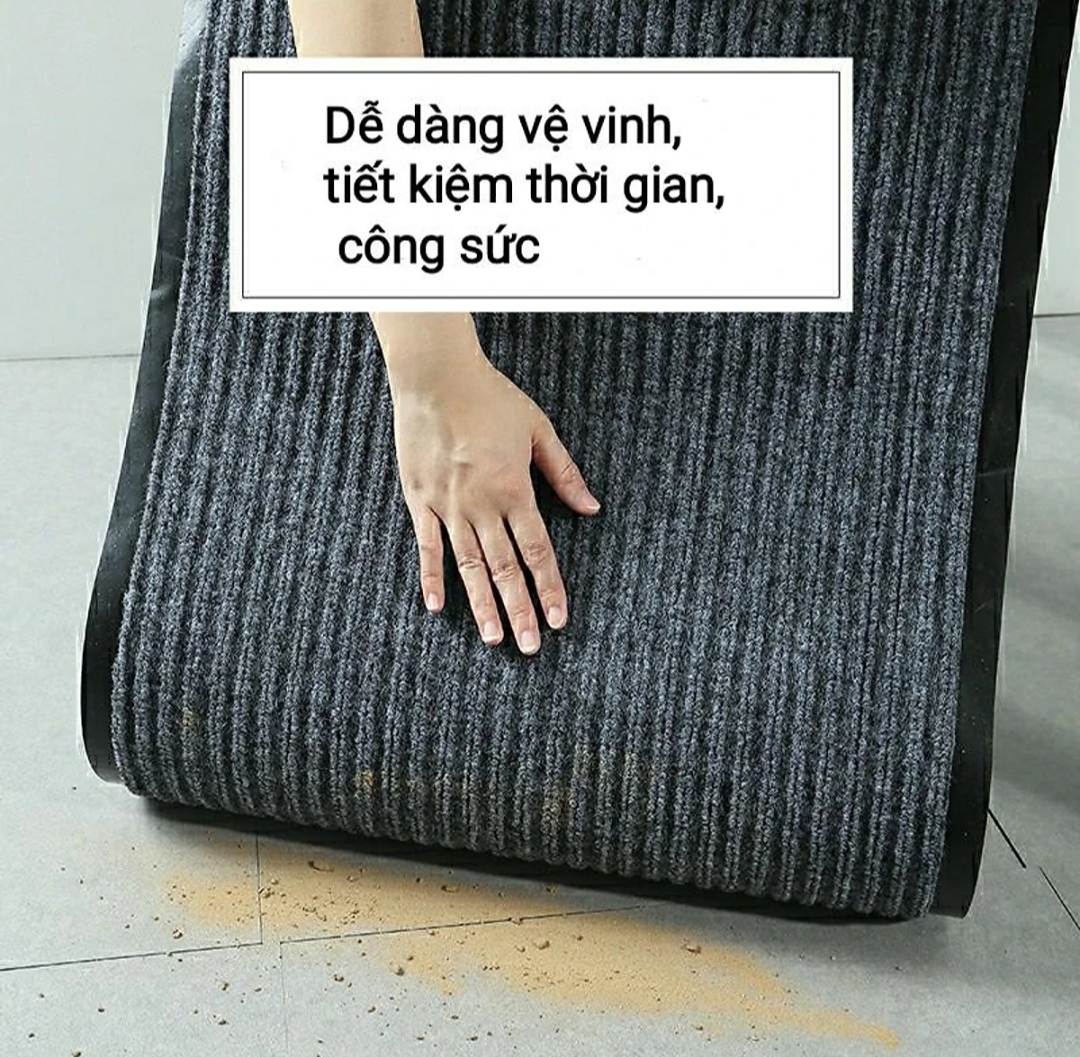 - Thảm có thiết kế rãnh sọc giúp dễ vệ sinh, chỉ cần xịt nước, bụi bẩn sẽ trôi theo rãnh thoát nhanh ra ngoài.