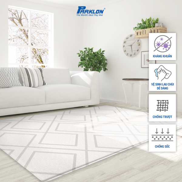 Thảm Trẻ Em Hàng Đầu Thế Giới Nhập Khẩu Chính Hãng Hàn Quốc Parklon Thương hiệu: Parklon Xuất xứ: Hàn Quốc Chất liệu: Nhựa PVC Họa tiết: Hoa Văn Vân Đá Hoa Cương Trắng