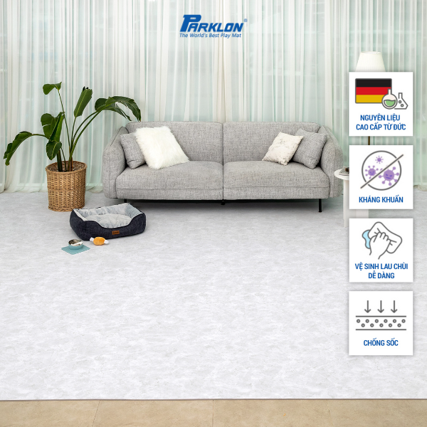 Thảm Trẻ Em Hàng Đầu Thế Giới Nhập Khẩu Chính Hãng Hàn Quốc Parklon Thương hiệu: Parklon Xuất xứ: Hàn Quốc Chất liệu: Nhựa PVC Họa tiết: Hoa Văn Vân Đá Hoa Cương Trắng
