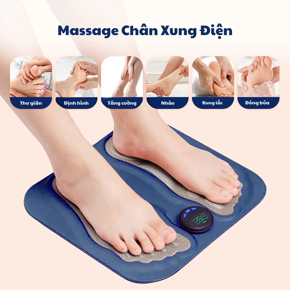 Thảm massage chân bằng xung điện EMS, pin sạc tiện dụng, màn hình LCD, giúp lưu thông khí huyết