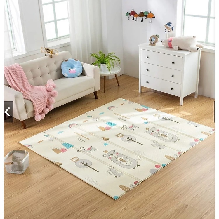 - Thảm XPE cao cấp không thấm nước, 2 mặt đều có thể dùng được và được in họa tiết sặc sỡ đáng yêu