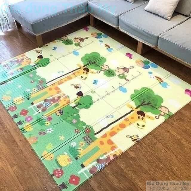 Không mùi (cả trước và sau khi sử dụng), không có mùi nhựa, mùi xốp như các chất liệu rẻ tiền khác Mềm mại và thoải mái, bảo vệ bé khi vấp ngã Bề mặt thảm xốp có vân nổi chống trơn trượt. Kích thước: 1,8x2m, 2 mặt Thảm gập gọn có túi xách di chuyển dễ dàng