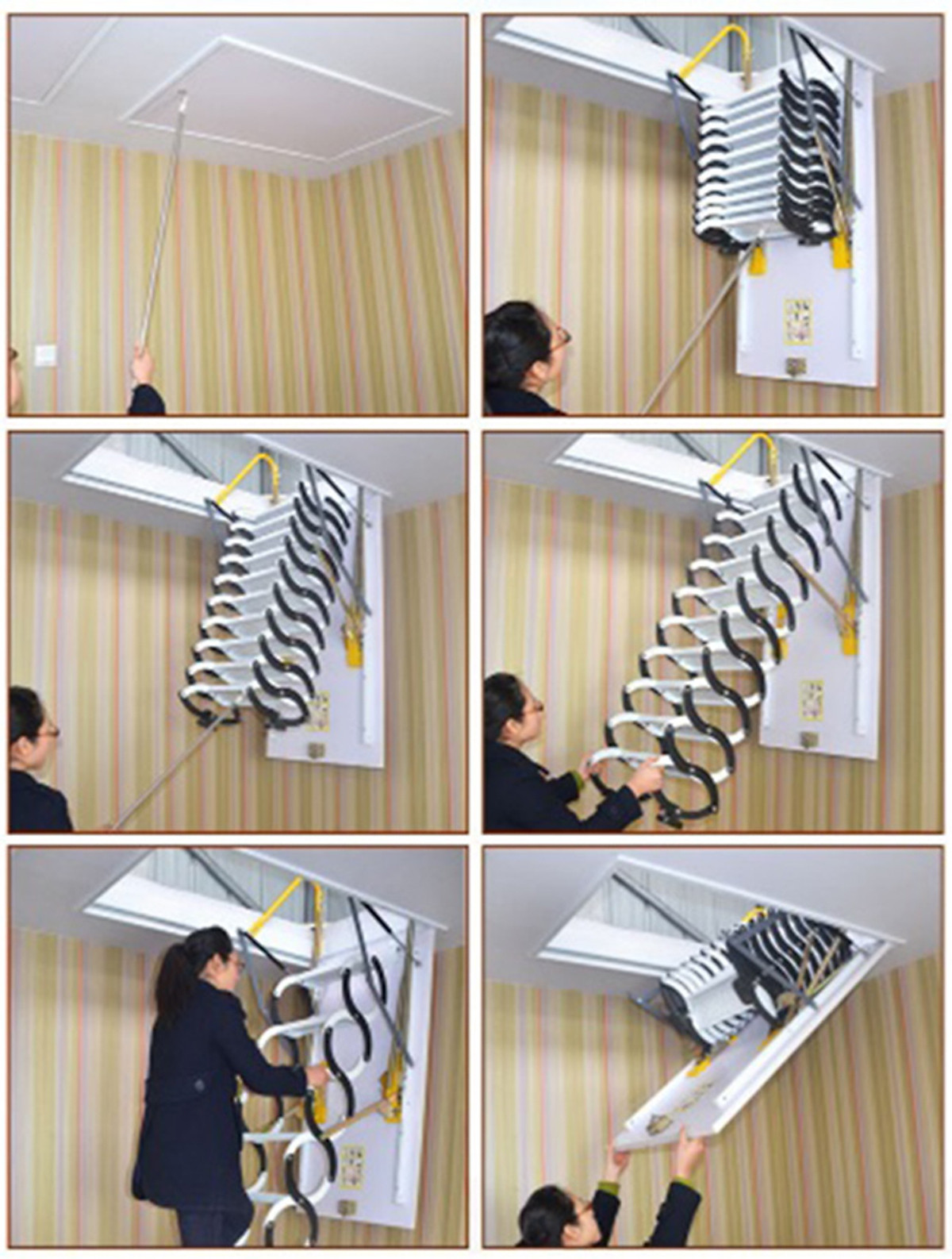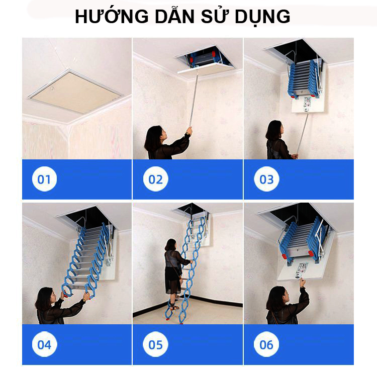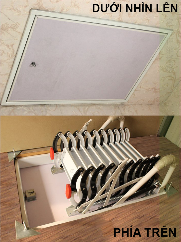 Thang gác mái ốp trần thông minh xếp gọn dễ dàng