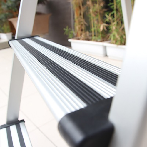 - Chất liệu: Nhôm định hình cao cấp, mặt bậc trên cùng bằng nhựa, các bậc dưới bằng nhôm có thêm các dải nhựa chống trượt