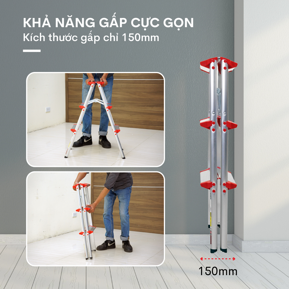 Thang nhôm gấp chữ A FUJIHOME DL203-- 3 bậc x2 [ Nhôm chịu lực cao- Chân chống trơn trượt - Gấp gọn tiện lợi] ƯU ĐIỂM SẢN PHẨM: - Bề mặt bầng thang thiết kế