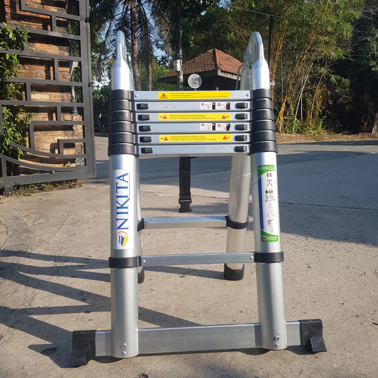 Thang nhôm rút NIKITA: có thể được điều chỉnh chiều cao một cách linh hoạt, phù hợp với nhiều nhu cầu sử dụng khác nhau. Chiều cao thang có thể lên tới 6m, đáp ứng được các công việc đòi hỏi độ cao lớn.