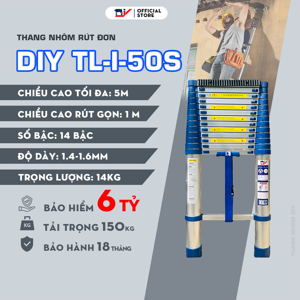 Thang nhôm rút đơn DIY TL-I-50S dòng sản phẩm mới nhất, sản xuất theo công nghệ Mỹ có độ chắc chắn và khả năng chịu lực cao. Thang nhôm rút DIY thiết kế thông minh với kiểu dáng có thể rút gọn nhanh chóng và tiện dụng từ đó thay đổi linh hoạt nhiều độ cao khác nhau bằng cách thông qua chốt khoá an toàn để kéo lên, rút xuống linh hoạt.