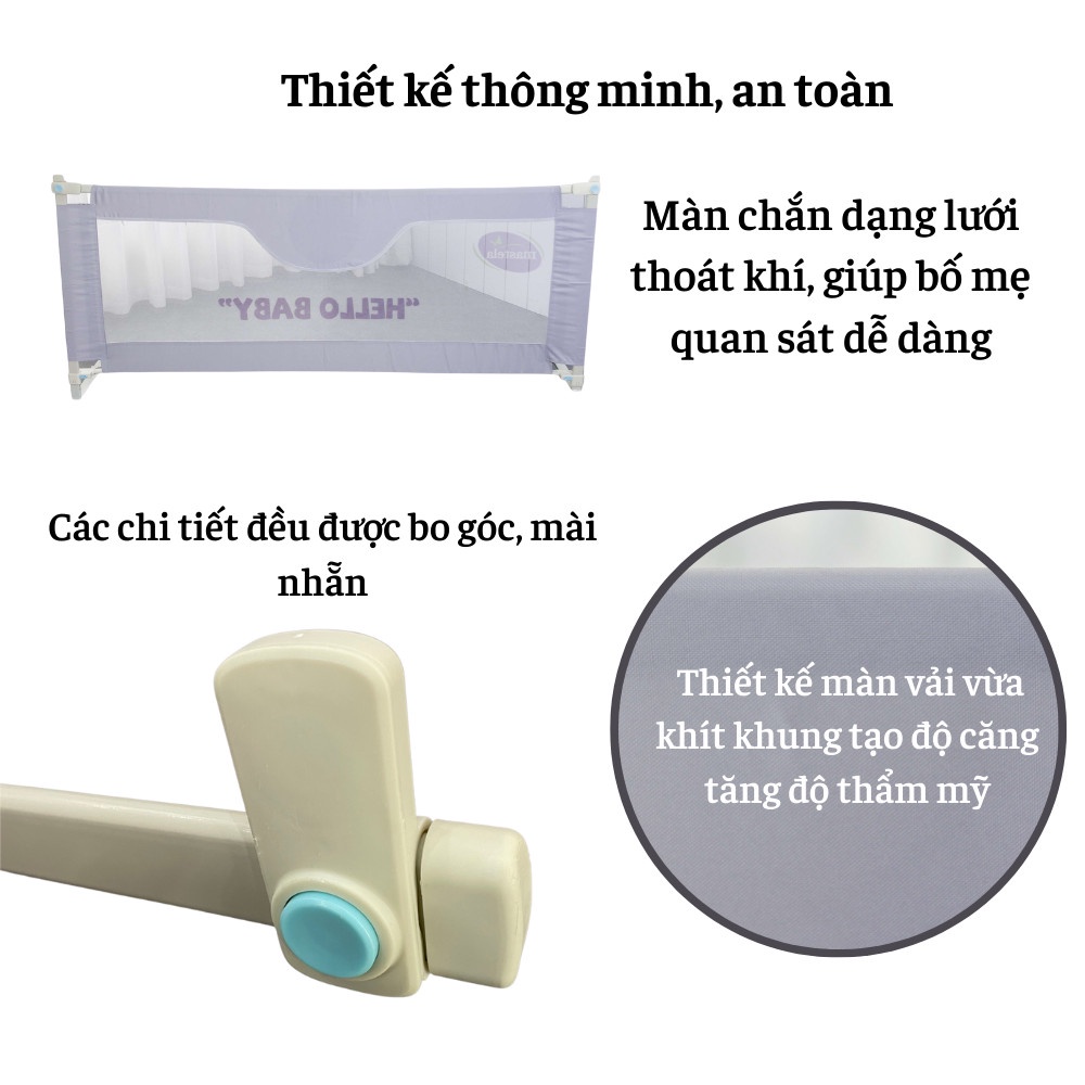 Mua tại TiktokGiới thiệu Để vừa giúp bé tạo được thói quen tự lập từ nhỏ, vừa thoải mái hoạt động trong một không gian an toàn, bố mẹ nên trang bị cho bé tấm chắn bảo vệ của Mastela. Với chất liệu kim loại chắc chắn, thanh chắn giường Mastela như một tấm chắn giúp bé được an toàn khi ngủ, khi chơi, tránh các va đập, ngã xuống giường khi không có người lớn bên cạnh. Với những gia đình cho bé ngủ riêng, thì sản phẩm này lại cần thiết hơn bao giờ hết. Chất liệu Kim loại Thép không gỉ, Vải dù Đặc điểm nổi bật Thanh chắn giường Mastela là một sản phẩm cao cấp mang nhiều đặc tính nổi trội từ chất liệu đến thiết kế, từng chi tiết trên sản phẩm đều được sản xuất một cách tỉ mỉ.
