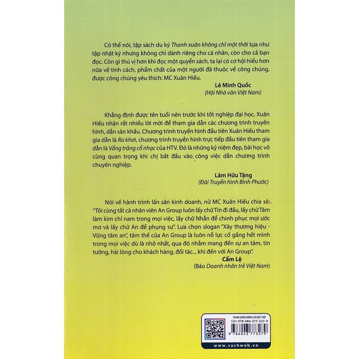 Khép lại tập sách, MC Xuân Hiếu trân trọng những tình cảm yêu thương mà quý anh chị phóng viên báo chí đã từng phỏng vấn và đăng bài trên các phương tiện truyền thông bằng việc trích dẫn lại một số bài báo đã đăng. Điều này như góp phần lưu giữ quãng thời gian thanh xuân mà Xuân Hiếu đã đi qua, để Thanh xuân không chỉ một thời…