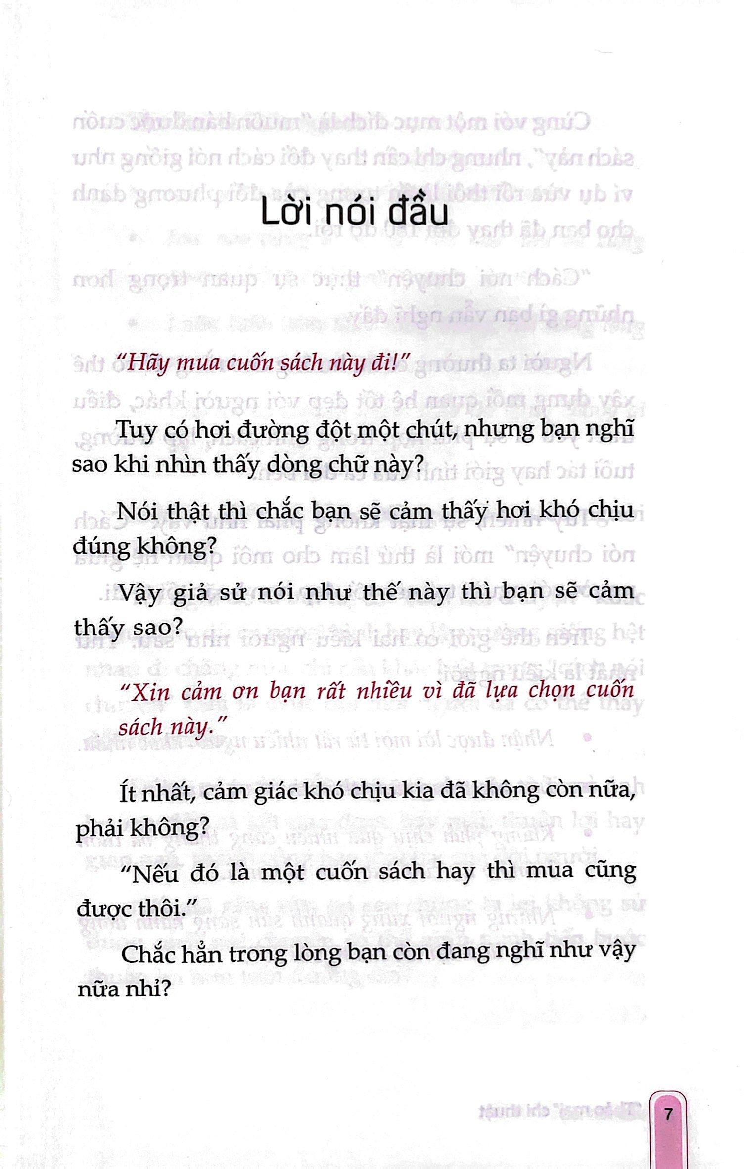 Cùng với một mục đích là “muốn bán được cuốn sách này”, nhưng chỉ cần thay đổi cách nói giống như ví dụ vừa rồi thôi là ấn tượng của đối phương dành cho bạn đã thay đổi 180 độ rồi. “Cách nói chuyện” thực sự quan trọng hơn những gì bạn vẫn nghĩ đấy.