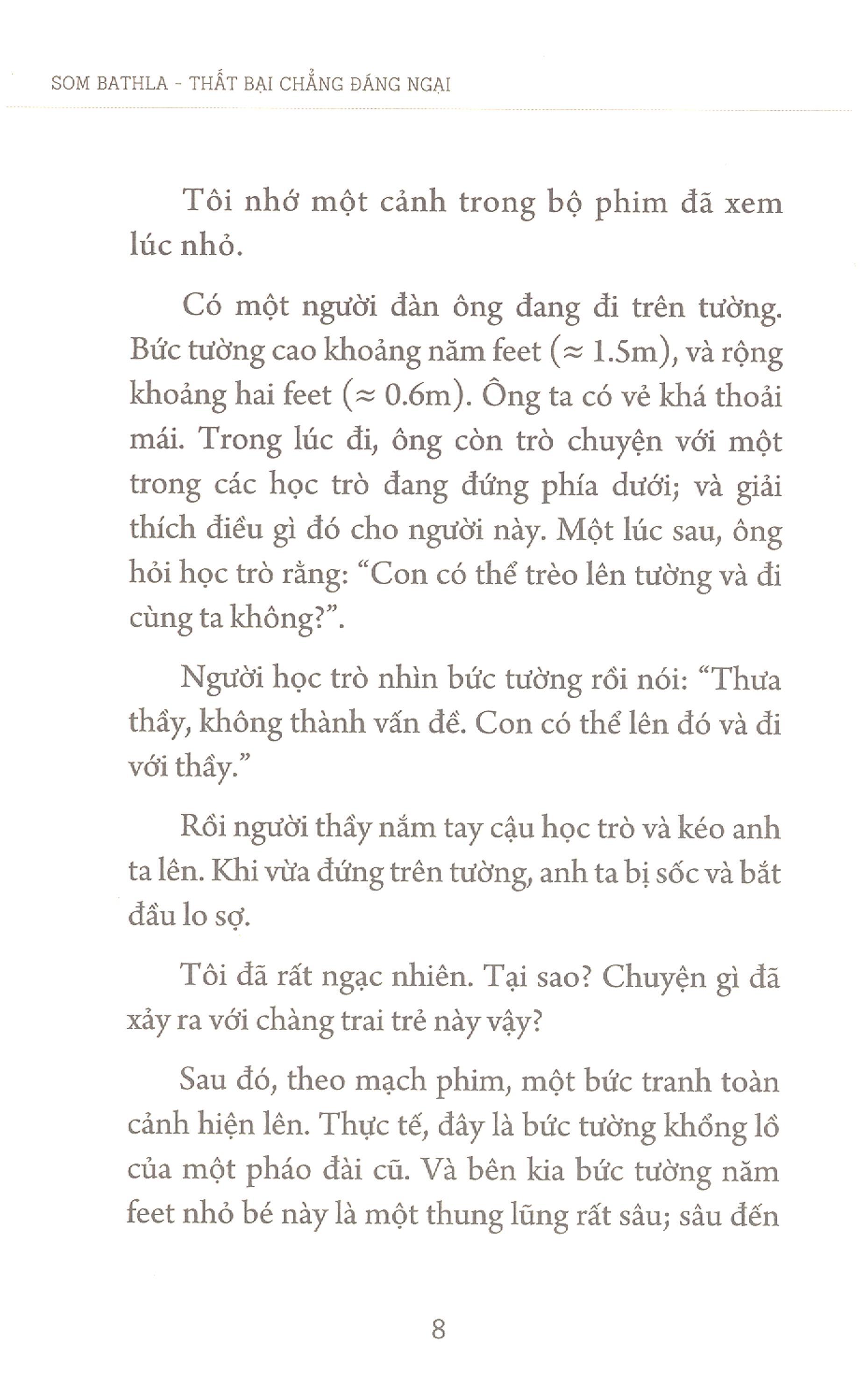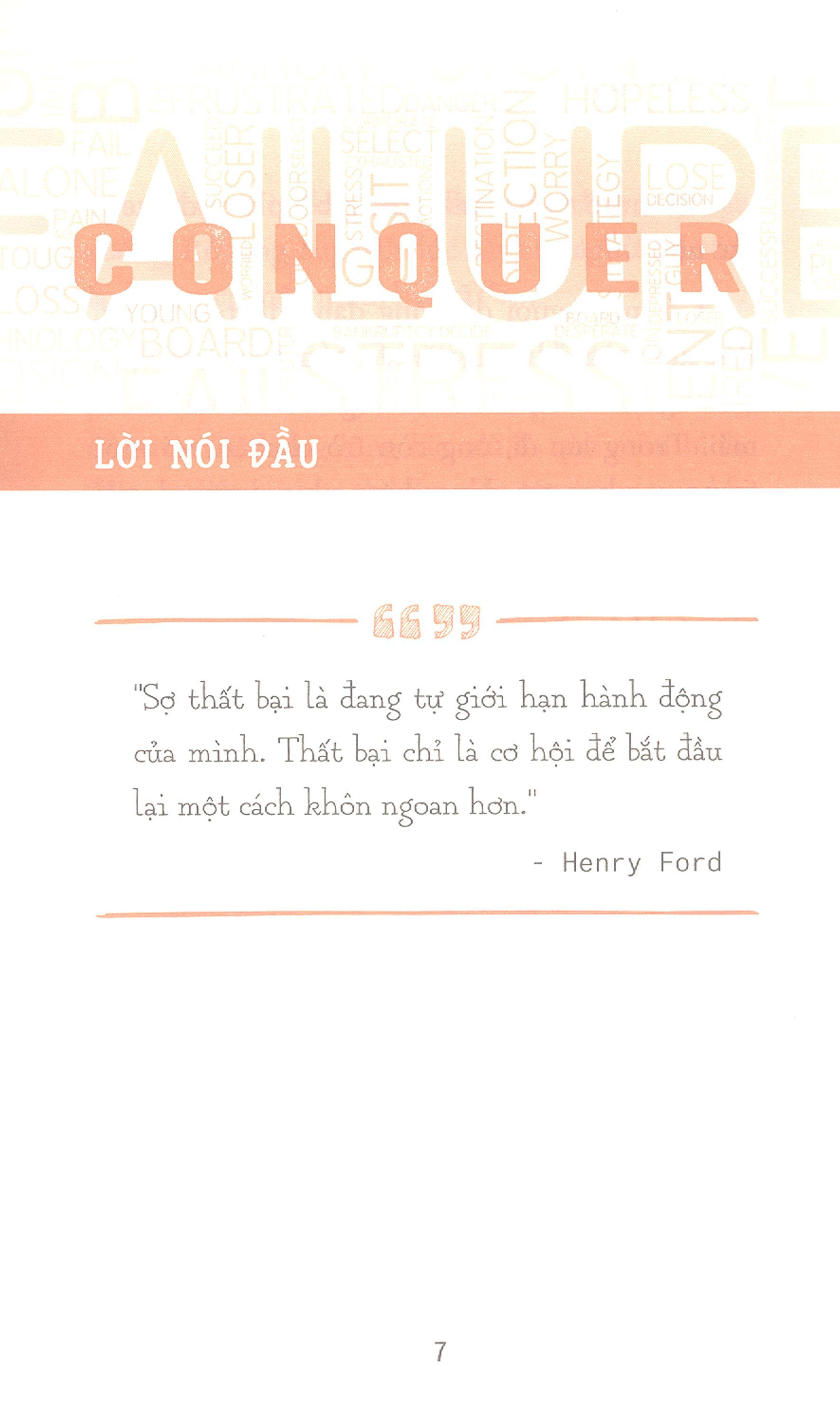 Nếu mình thi rớt…? Nếu mình không thuyết phục được khách hàng…? Nếu mình lúng túng khi thuyết trình…? Nếu mình không làm tốt buổi phỏng vấn…? Mỗi ngày, có bao nhiêu câu hỏi tương tự như thế xuất hiện trong tâm trí bạn? Những lo lắng, sợ hãi này có thể khiến trán bạn đổ mồ hôi, lòng bàn tay ướt đẫm, và cổ họng khô ran? Nếu bạn nghĩ rằng mình không dám hành động do sợ thất bại; nếu bạn luôn tin thất bại là một thảm họa khủng khiếp; thì đã đến lúc bạn nên nhìn thế giới bằng một lăng kính mới. Qua cuốn sách này, Som Bathla sẽ giúp bạn nhìn nỗi sợ thất bại theo một cách khác, để bạn hiểu và tạo dựng một mối quan hệ khác với thất bại. Bạn sẽ thấy thất bại là điều cần thiết và cần phải trải nghiệm trước khi có thể đạt được bất kỳ thành tựu nào.