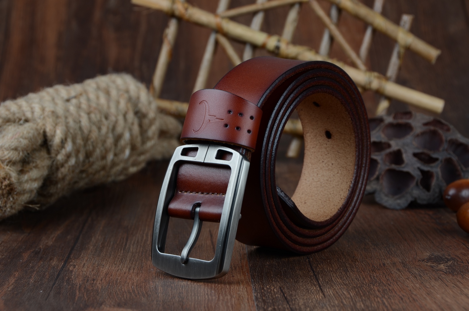Thắt lưng da bò nguyên tấm DHM-531 đầu khoá kim vàng