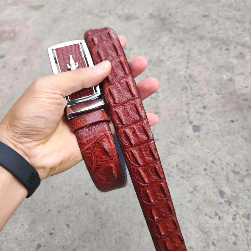 Mua tại TiktokThắt lưng được làm từ phần lưng của cá sấu lớn. Chạy từ gù xuống gai lưng qua vây rất đều và đẹp, kết hợp da bụng phần cuối dây giúp dễ dàng sử dụng.