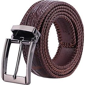 ✨Thắt Lưng Nam Da Cá Sấu Đan Viền Đầu Kim Huy Hoàng HT4277 - Nâu Đất
